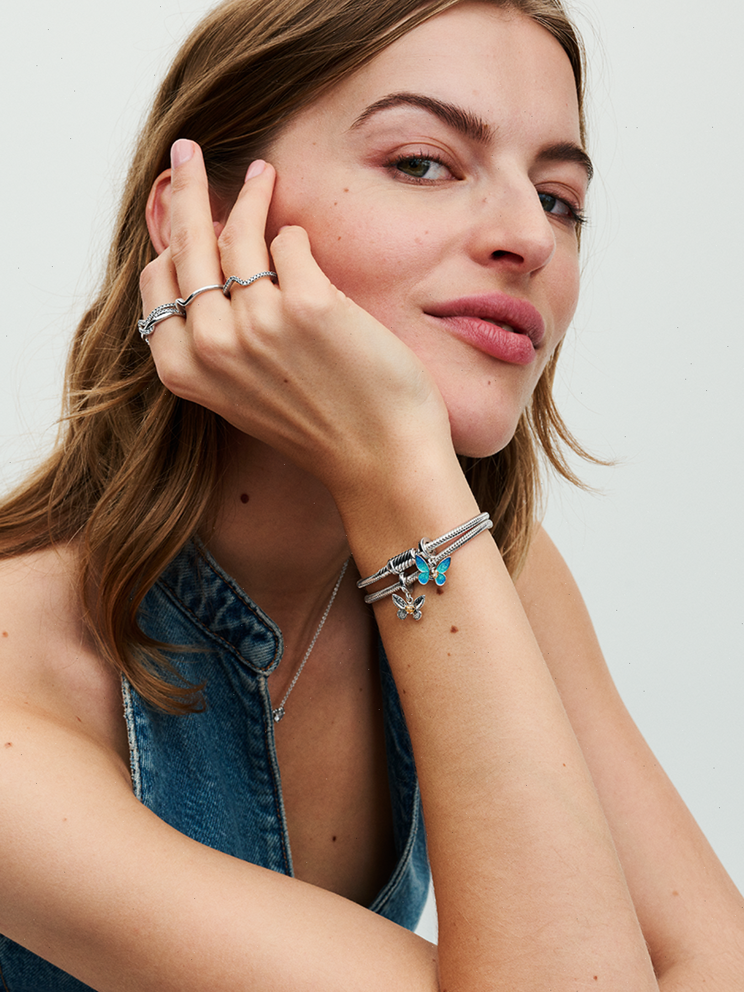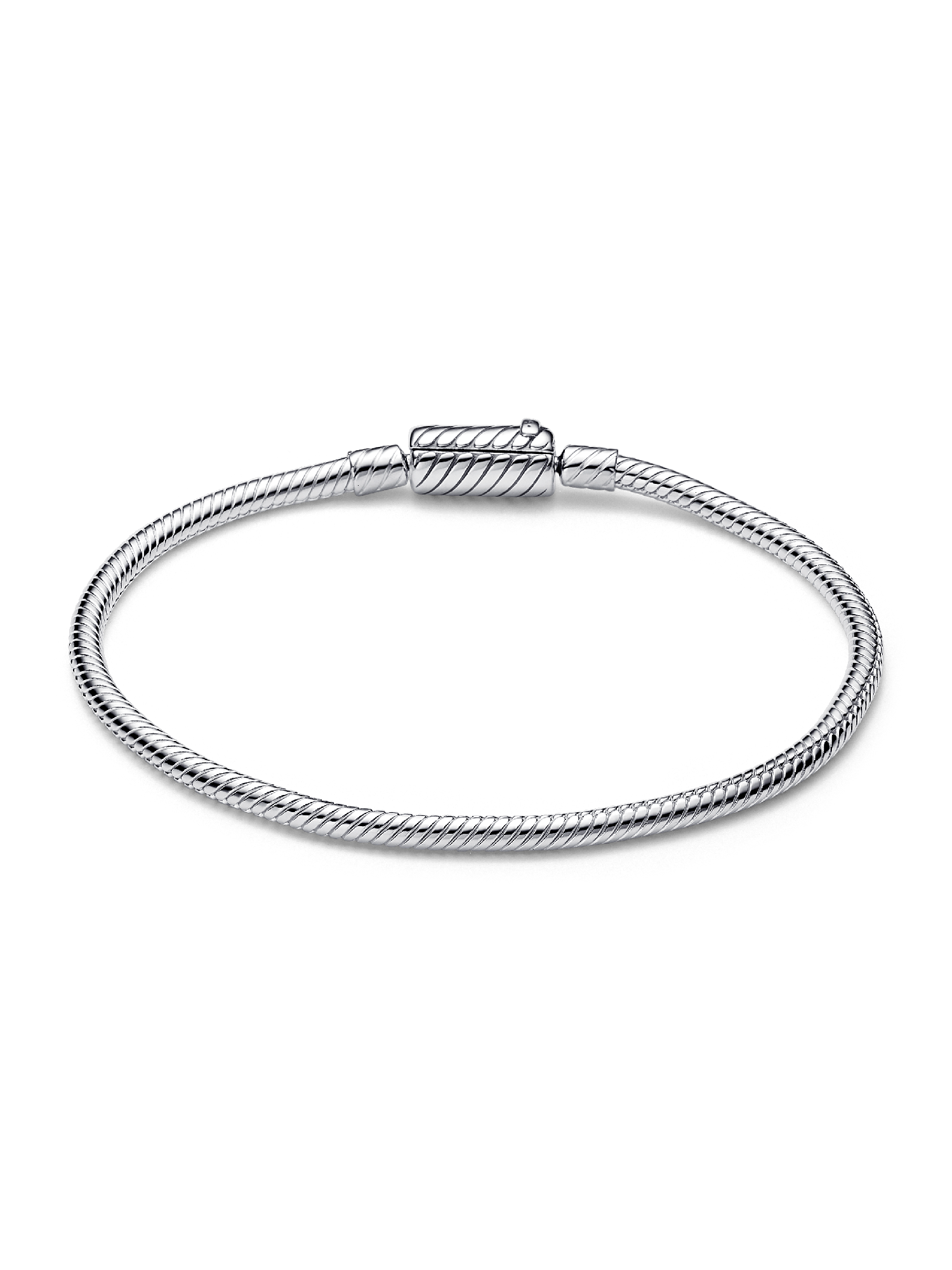 Meet the Pandora Moments Sliding Magnetic Clasp Snake Chain Bracelet. Our sterling silver snake chain bracelet gets an update with a new magnetic clasp, making it even easier to put on and style with your favorite charms. The magnetic clasp clicks shut with ease, and a sliding piece holds it securely in place. The snake chain texture continues on the clasp for a sleek, streamlined look. Style it with up to 16-18 Pandora Moments charms or dangle charms.