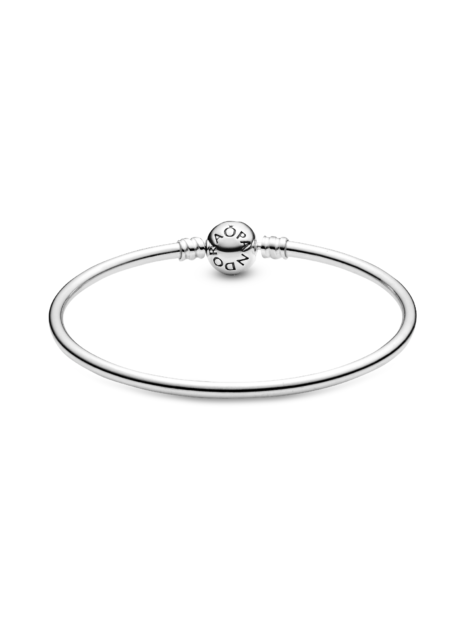 Sleek and elegant, this Pandora Moments bangle is simply beautiful. Crafted in polished sterling silver, it is finished with an embossed ball clasp. Wear this Pandora bangle on its own or create your dream bracelet by adding your personal collection of Moments charms.