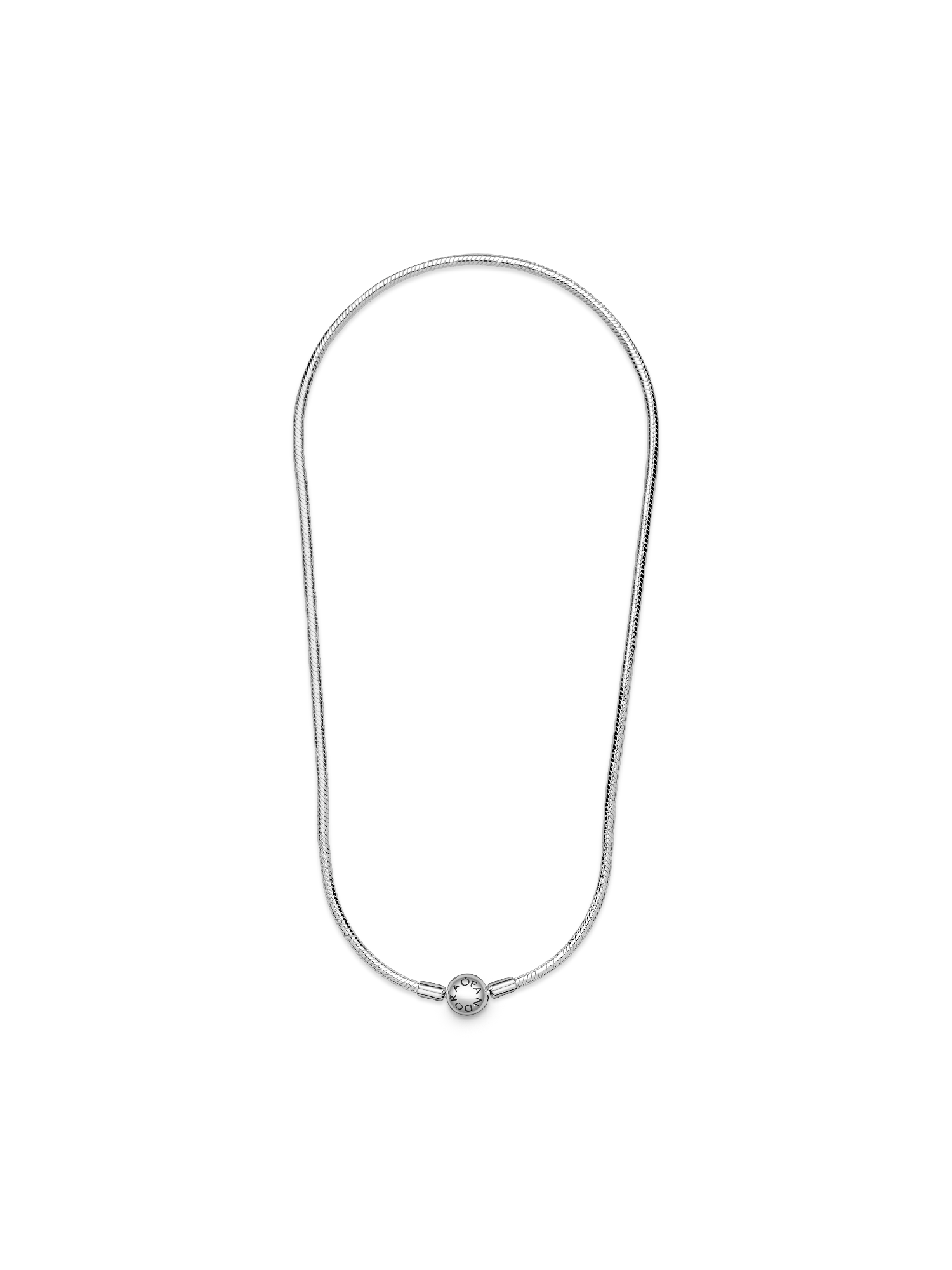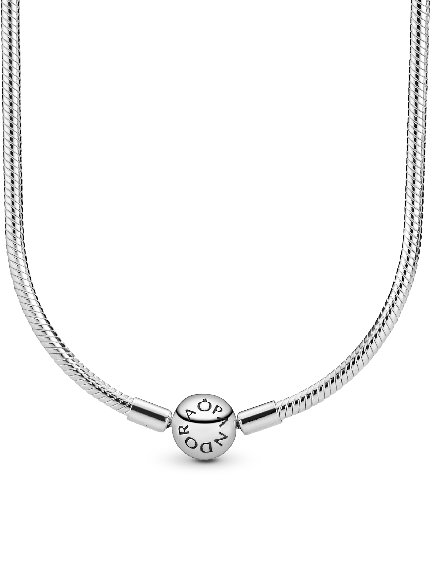 This sleek snake chain necklace is a sophisticated staple for your Pandora collection. Available in a choice of lengths, it is crafted in sterling silver and finished with an embossed ball clasp. Wear your Pandora necklace unadorned for simple elegance or create a unique look with your personal edit of charms. Complete your styling with some sparkling silicone-lined Pandora clips, a glamorous way arrange and secure your charms.