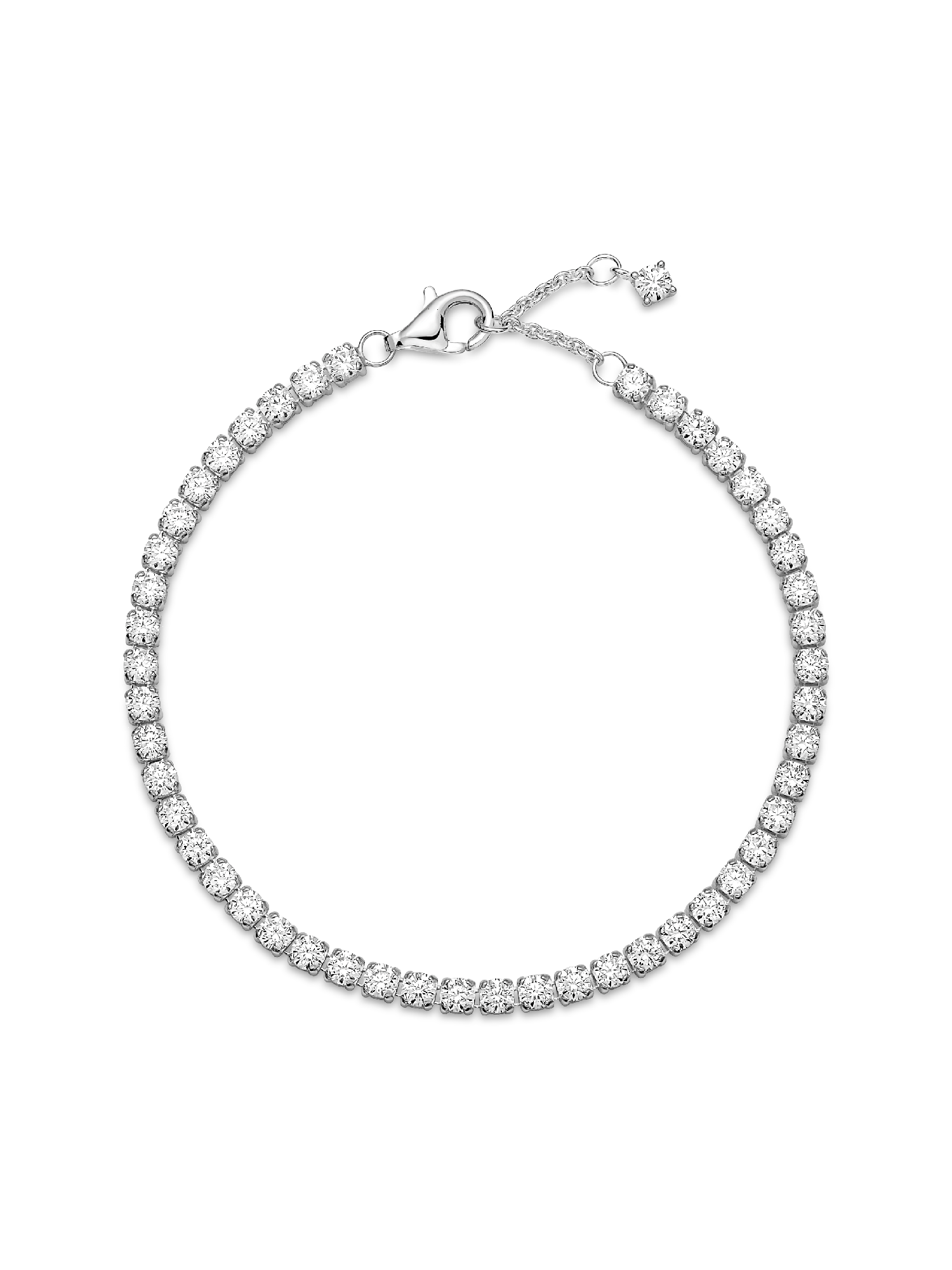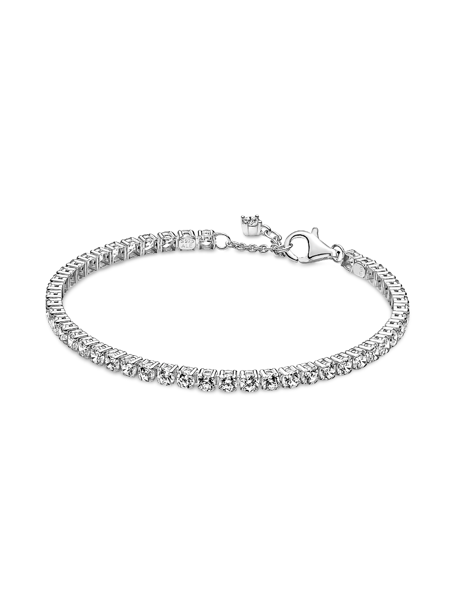 Tennis bracelets, anyone? This sterling silver Sparkling Tennis Bracelet features squared collets and is decorated with a bold line of clear cubic zirconia to make a statement fit for any occasion. Wear it on its own or stack bracelets of different colors and metal finishes for a modern look.