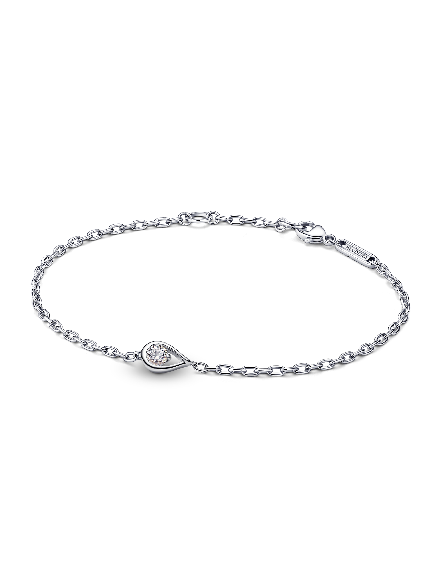 A new take on modern elegance in sterling silver, our lab-grown diamond chain bracelet showcases a 0.15 carat lab-grown diamond, hand-set within a modern infinity motif that symbolizes infinite joy, optimism and strength. The simplicity of a fine sterling silver chain complements the radiance of the lab-grown diamond centerpiece, creating a meaningful statement that shines as brightly as you. Two jump rings make the chain easily adjustable for the perfect fit. Each Pandora Lab-grown diamond is treated with a post-growth color enhancement called annealing.