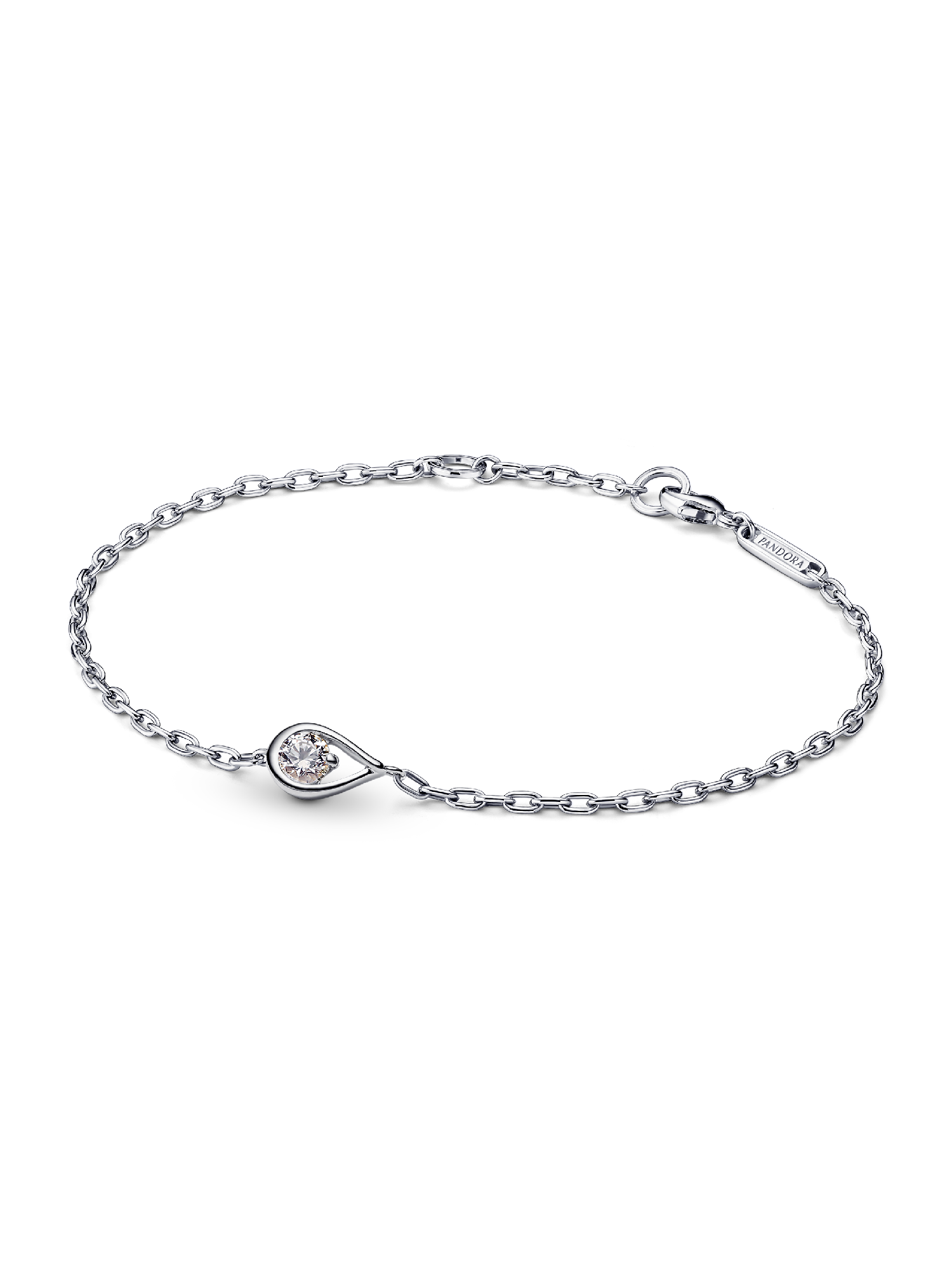 A new take on modern elegance in sterling silver, our lab-grown diamond chain bracelet showcases a 0.25 carat lab-grown diamond, hand-set within a modern infinity motif that symbolizes infinite joy, optimism and strength. The simplicity of a fine sterling silver chain complements the radiance of the lab-grown diamond centerpiece, creating a meaningful statement that shines as brightly as you. Two jump rings make the chain easily adjustable for the perfect fit. Each Pandora Lab-grown diamond is treated with a post-growth color enhancement called annealing.