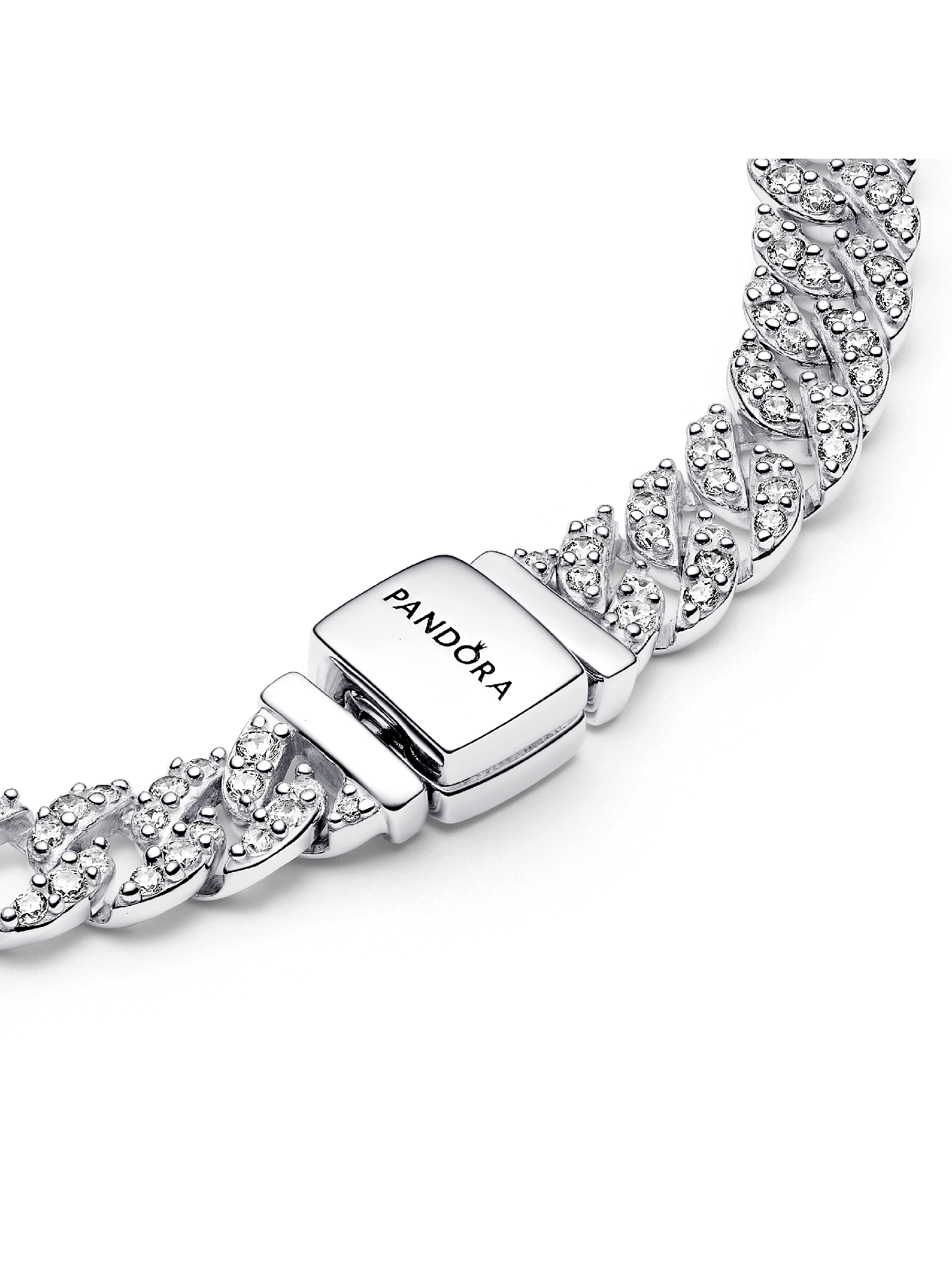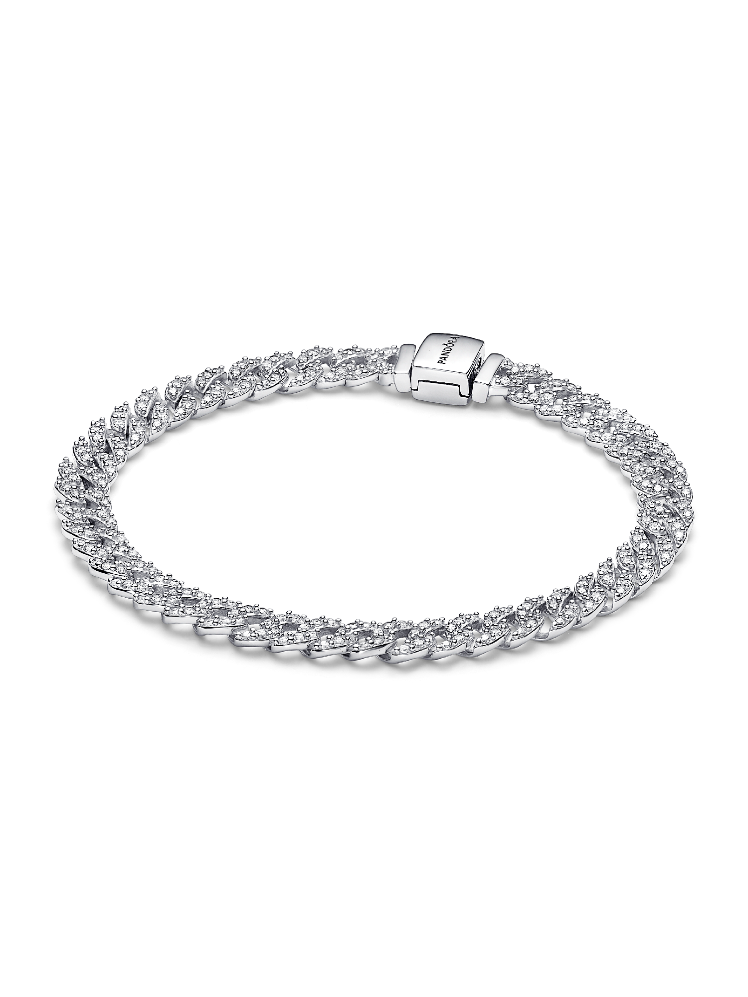Elevate your look with this shining Cuban chain bracelet. The top side of the sterling silver bracelet is set with sparkling cubic zirconia, while the underside is polished for shine and comfort. The bracelet closes with a flat, square-shaped clasp.