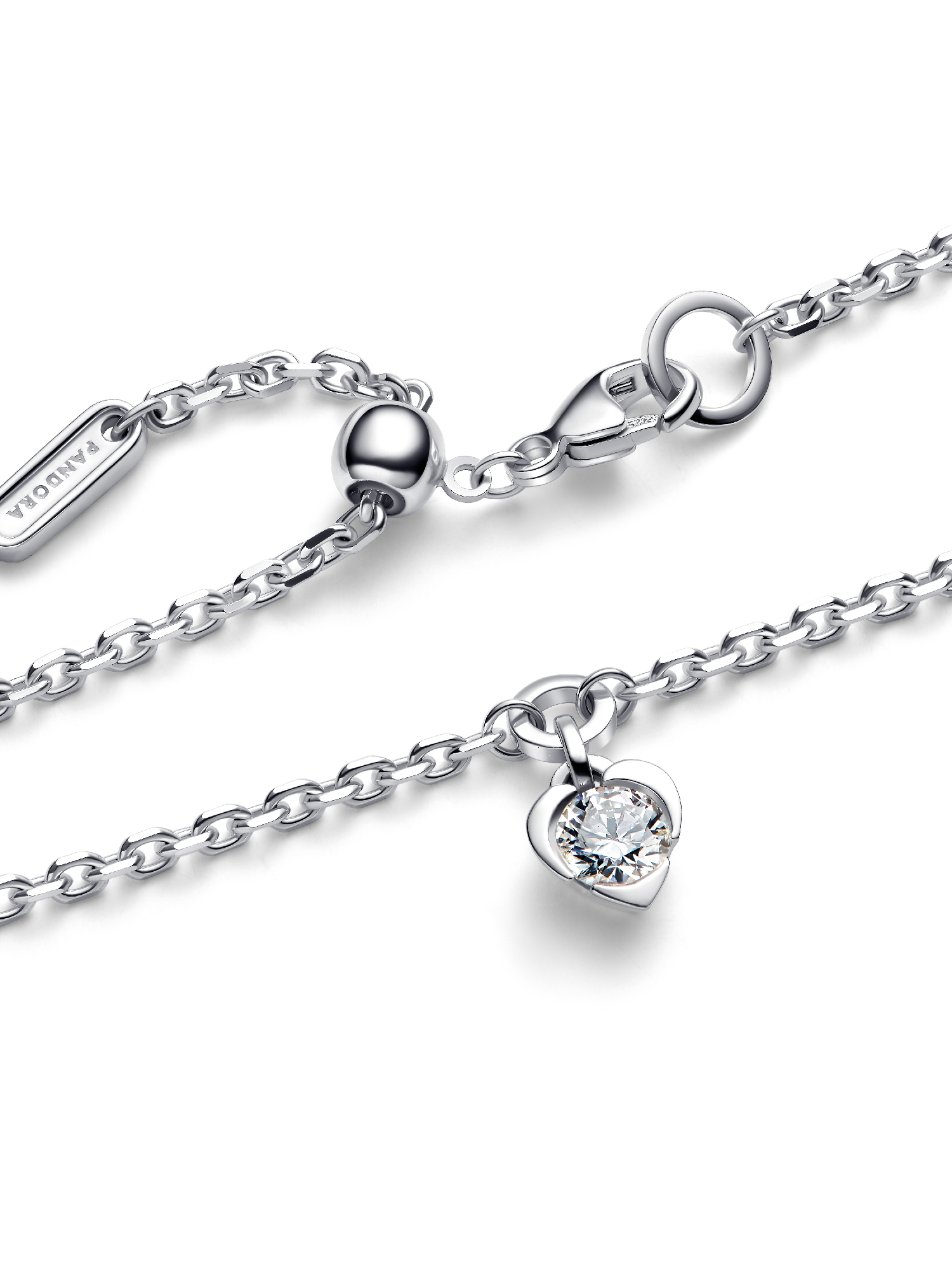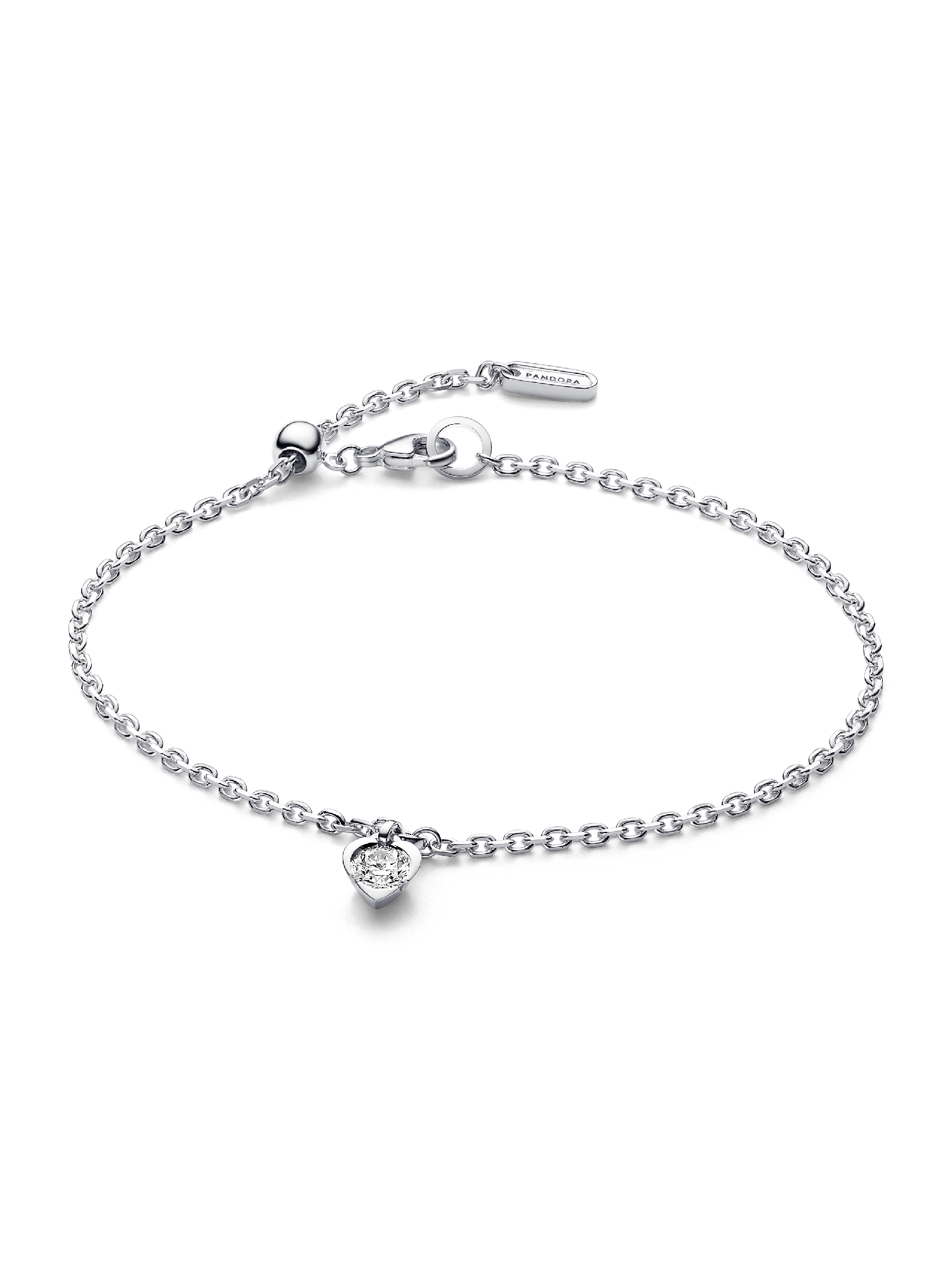 Feel the love with the Pandora Talisman Sterling Silver Lab-grown Diamond Heart Chain Bracelet. This sterling silver bracelet features a fixed pendant in the center, with a unique setting that creates a heart motif embracing a 0.25 carat lab-grown diamond. On the back of the stone, a heart-shaped cut-out echoes the shape of the setting and lets the light shine through to maximize sparkle. A slider with silicone inside allows you to adjust the bracelet for the perfect fit. A universal symbol of love, the heart shape makes this lab-grown diamond bracelet the perfect gift to represent a special connection - or an affirmation of the love you have for yourself.