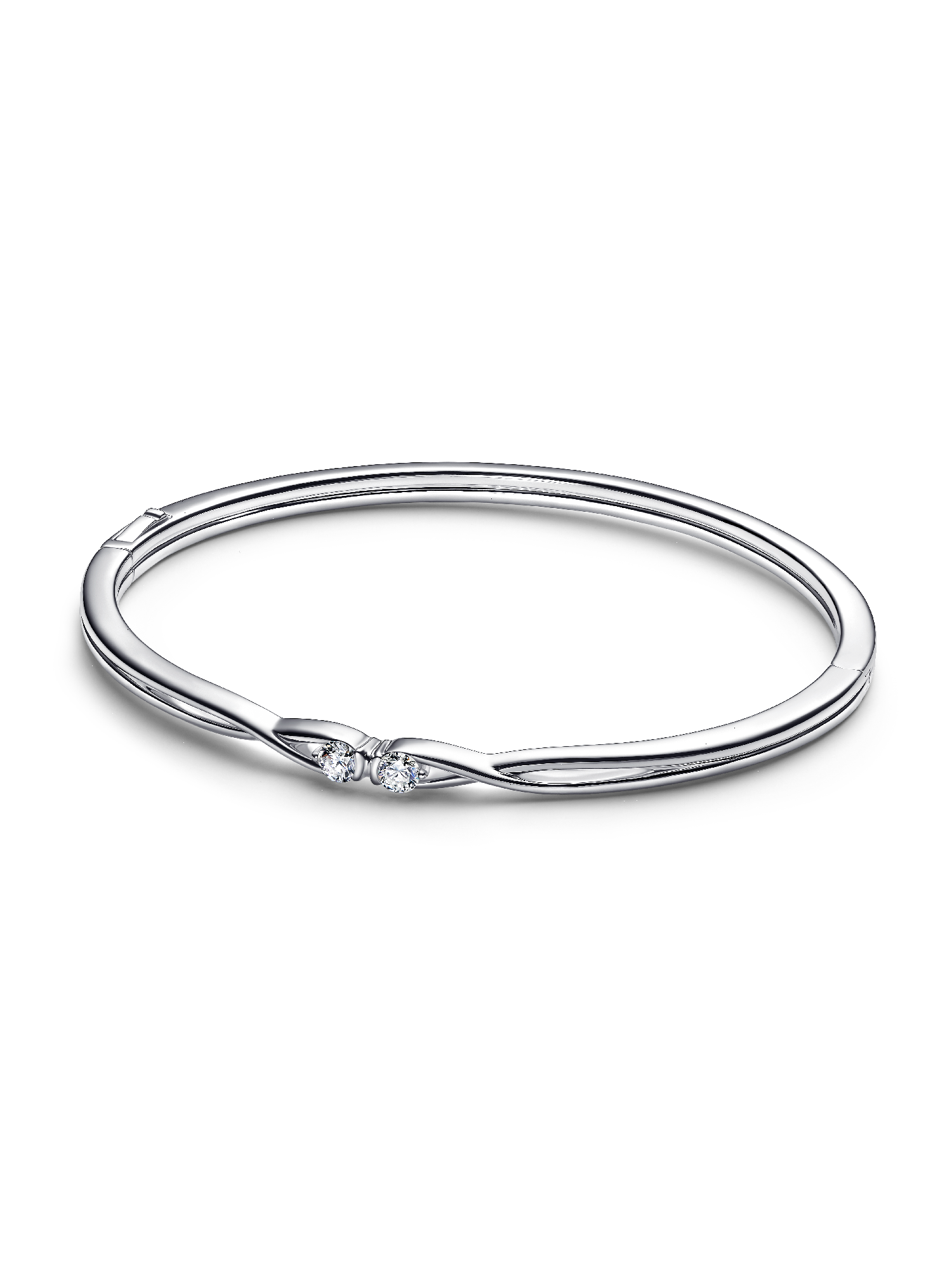 Infinite design, infinite styling possibilities. Our Pandora Infinite bangle is crafted in sterling silver, with two 0.15ct lab-grown diamonds that meet its centre. Set in our unique interpretation of an infinity symbol, the diamonds face each other and appear to float, allowing maximum light to pass through. With a hinge closure, this radiant bangle makes an unforgettable gift and a precious addition to any collection. To ensure our rigorous standards of quality in colour and clarity, each lab-grown diamond has undergone an additional high heat and pressure treatment prior to cutting and polishing.