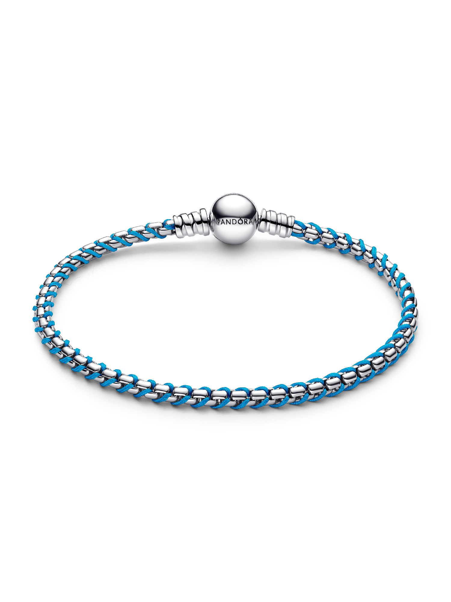 Braided sterling silver box chain with a touch of turquoise textile cord. Elevate your style with a unique combination of fabric and metal.