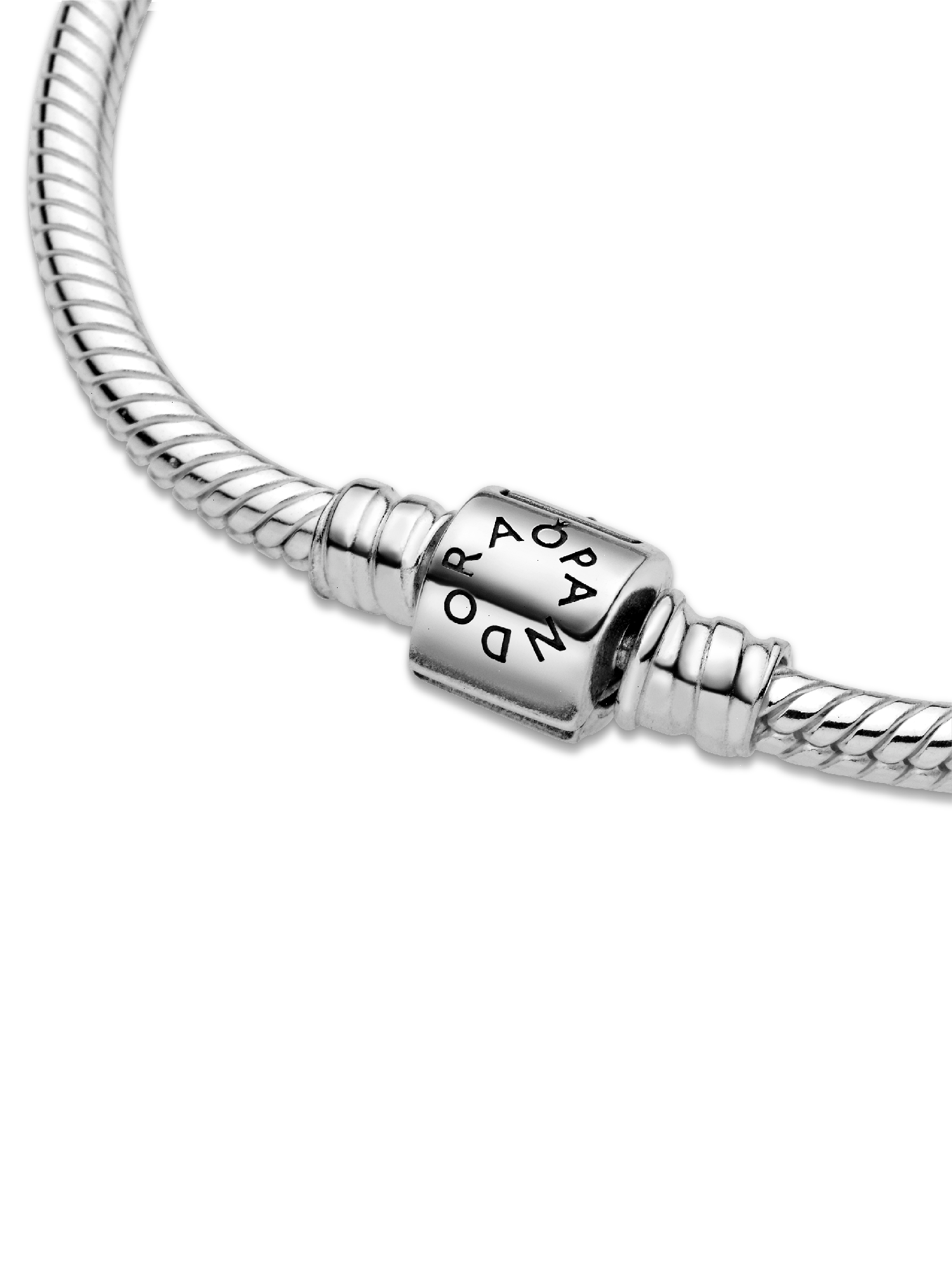 Never forget where you’re from with the shake chain bracelet with a barrel clasp in sterling silver. A part of long-standing Pandora heritage, the barrel clasp was a part of our first ever snake chain bracelet designs, which is why we’ve given it a modern update and reimagined it with sleeker details. Celebrate Pandora’s history with this iconic piece and let the staple live on as a part of your collection.
