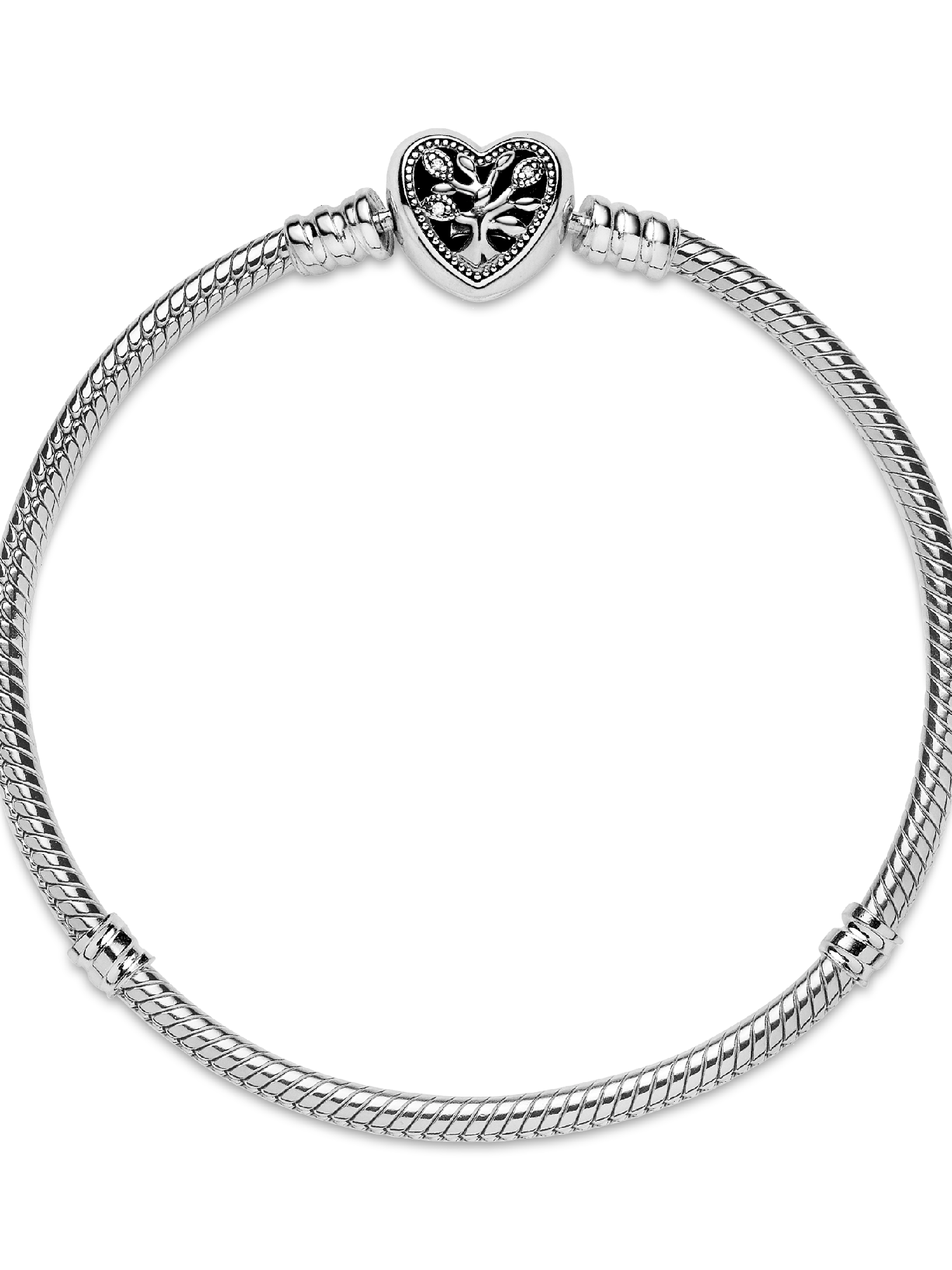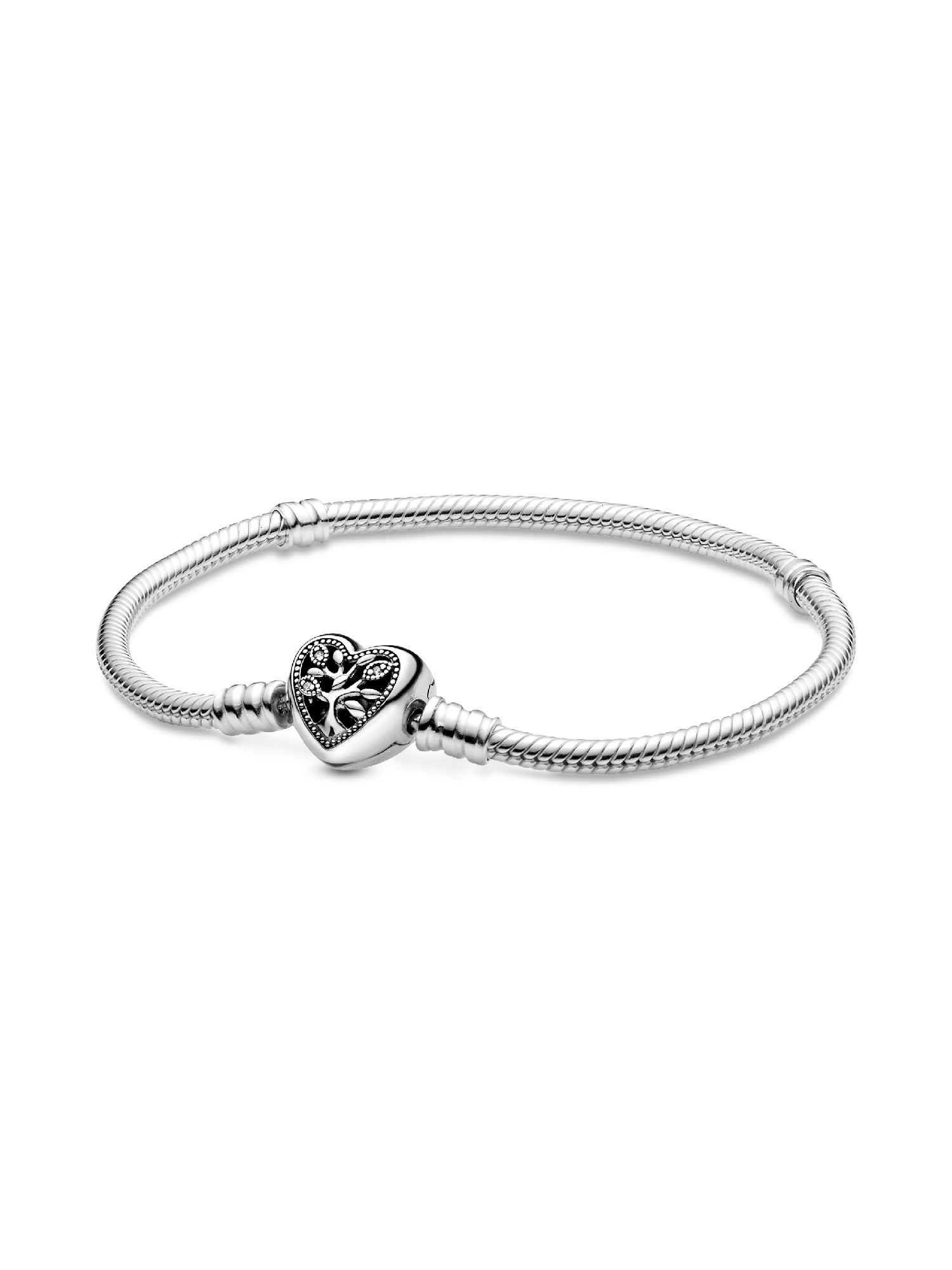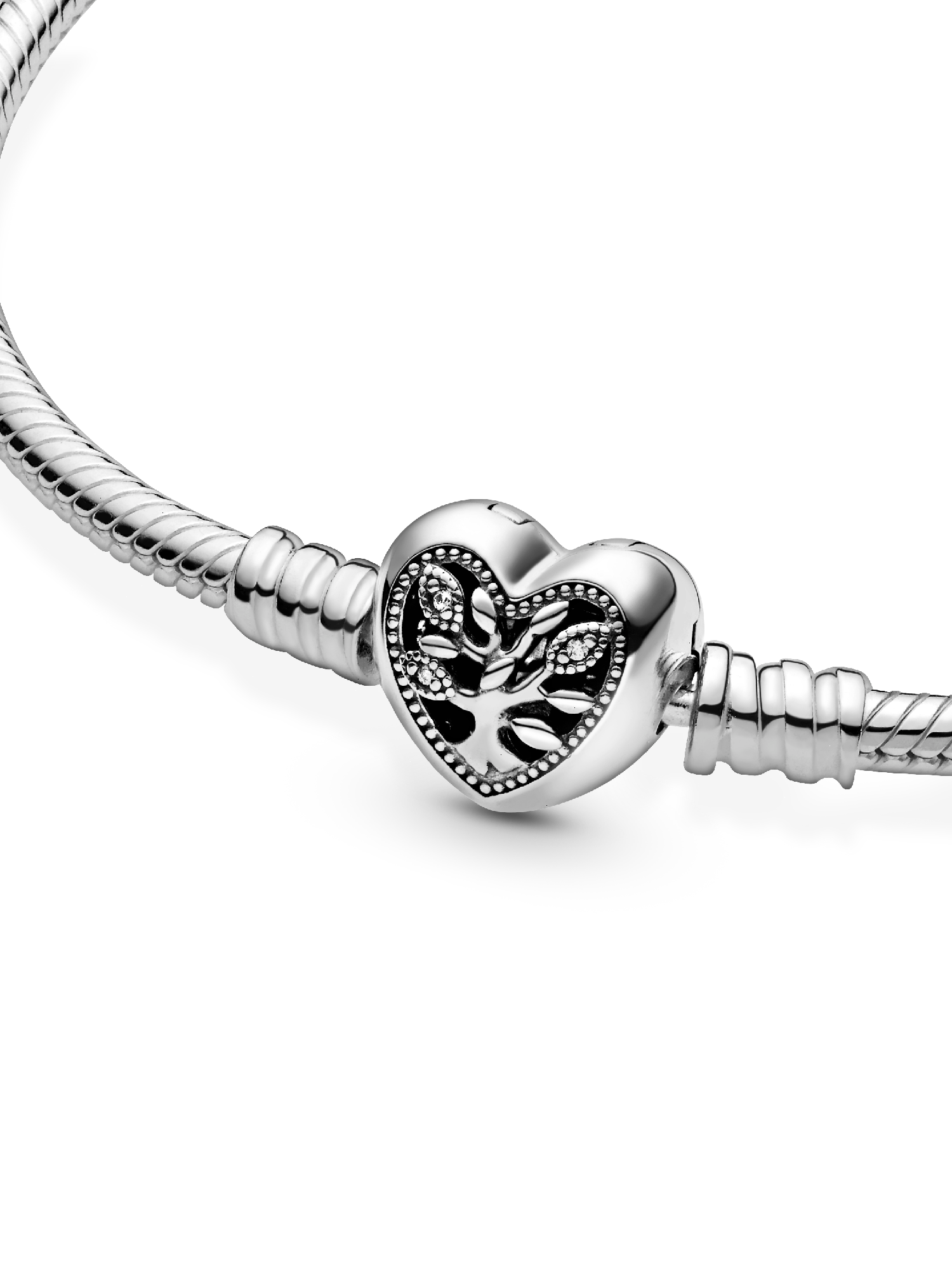 Celebrate the roots that hold us together with a tribute to those you keep in your heart. The family tree symbol is one of the most important within Pandora jewelry, a celebration of the everlasting bonds we can wear every day. This openwork heart design in sterling silver featuring three micro bead-set round cubic zirconia and with “Family” engraved on the back, lets you wear your devotion as the focus of your bracelet.