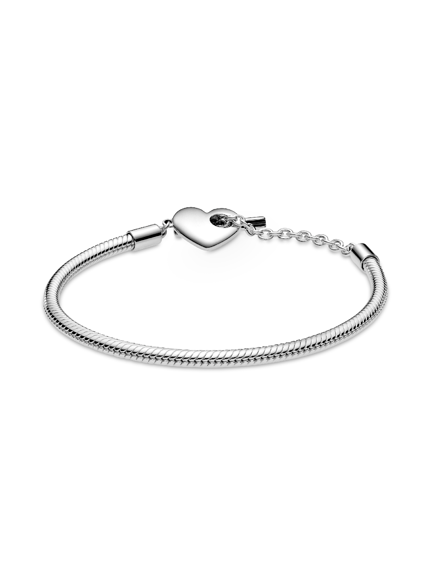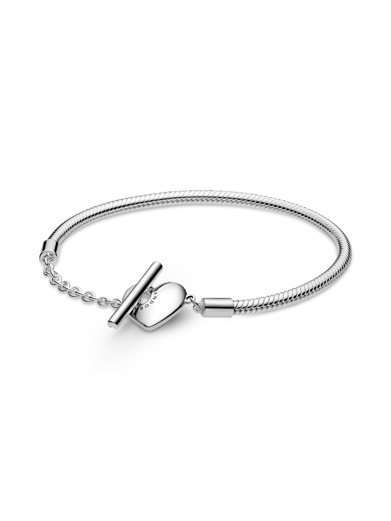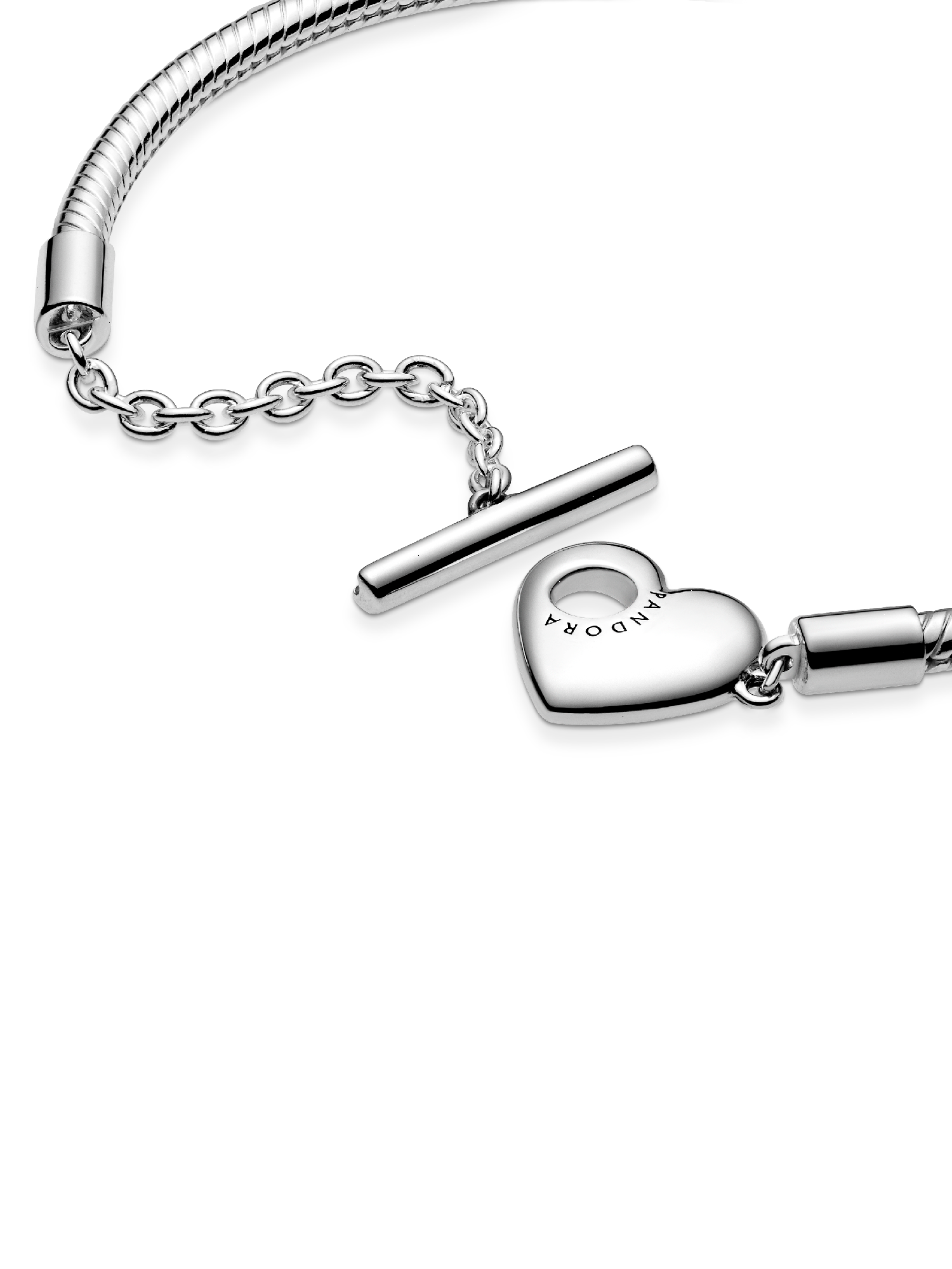 Timeless, with a touch of love. Inspired by our classic T-bar snake chain bracelet, this sterling silver bracelet features both a T-bar closure and a heart-shaped disc.