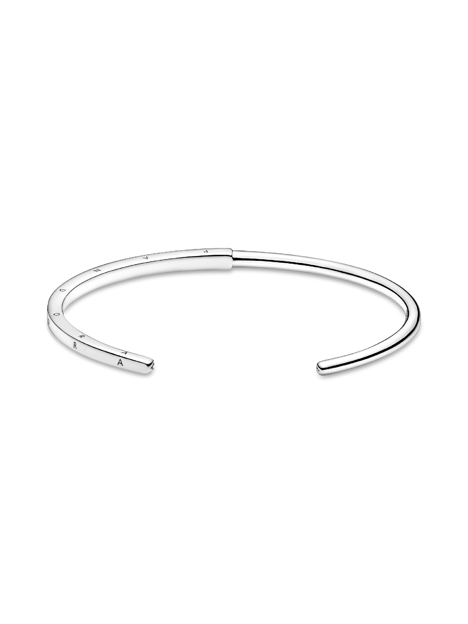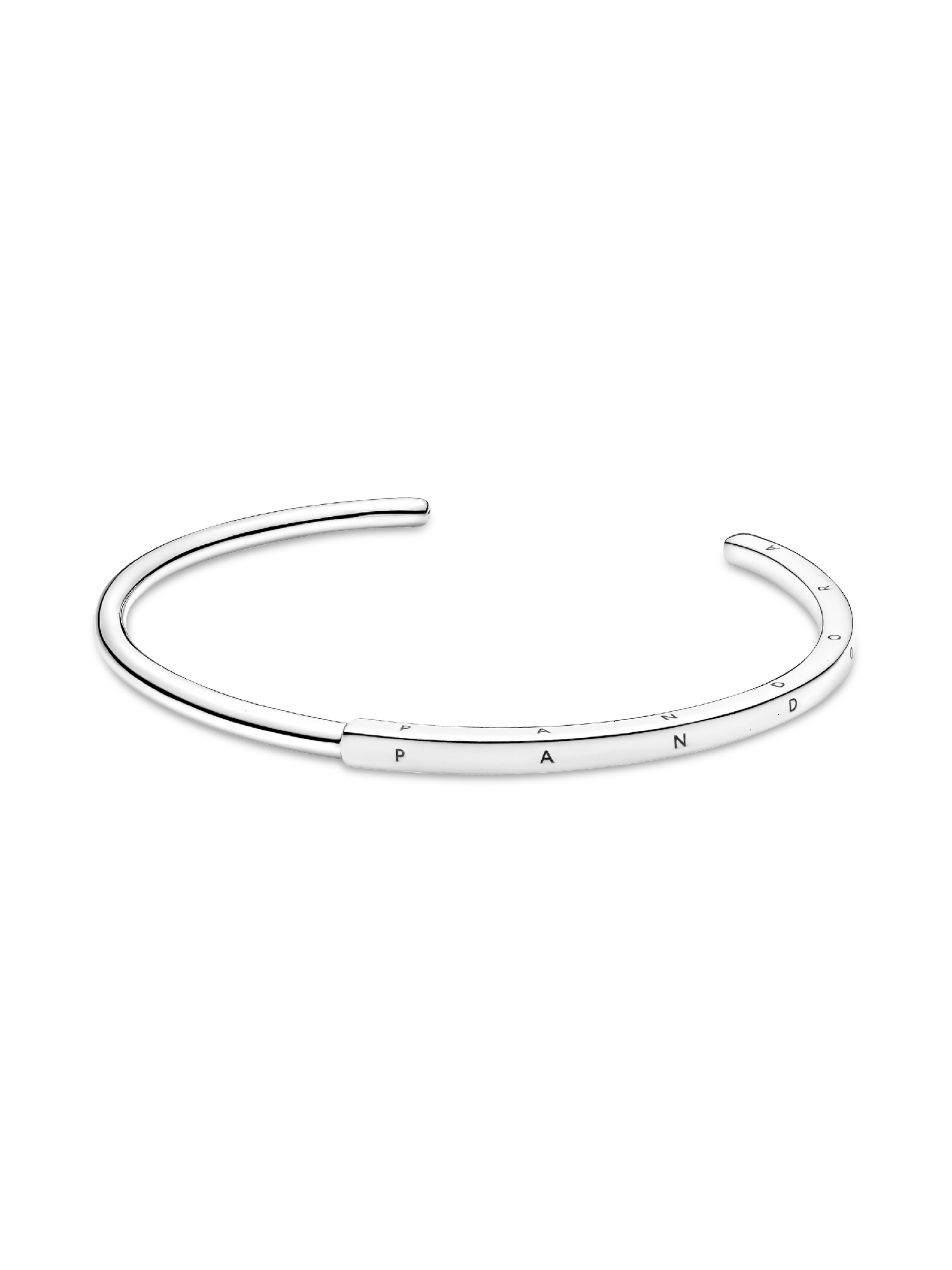 Streamline your look with the Pandora Signature I-D Bangle. With a half-squared, half-rounded profile, this bangle is hand-finished in Sterling Silver. The round polished profile transitions to a larger squared profile in the middle, which features the Pandora logo on its three outer sides. Each end of the bangle includes the Pandora Crown O monogram. The bangle is precisely sized for optimal performance and fit and is not designed to be flexed and twisted when put on and removed.
