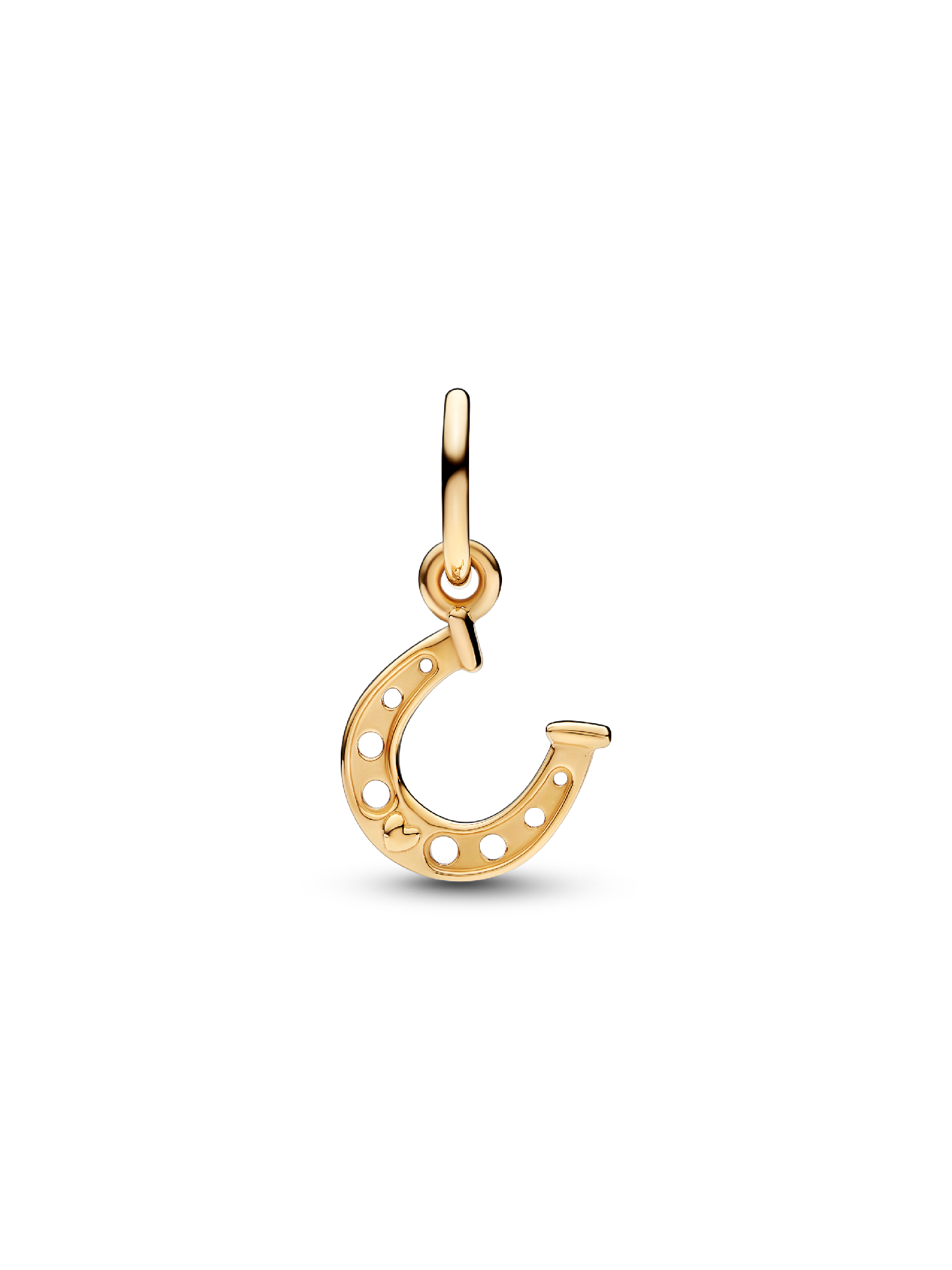 A symbol of love and luck for you or your nearest and dearest. The Lucky Horseshoe Dangle Charm is crafted in solid 14k gold for an elevated take on a classic symbol. The horseshoe is attached to the bail from one end and features a row of cut-out circles and a raised heart at the center on both sides.