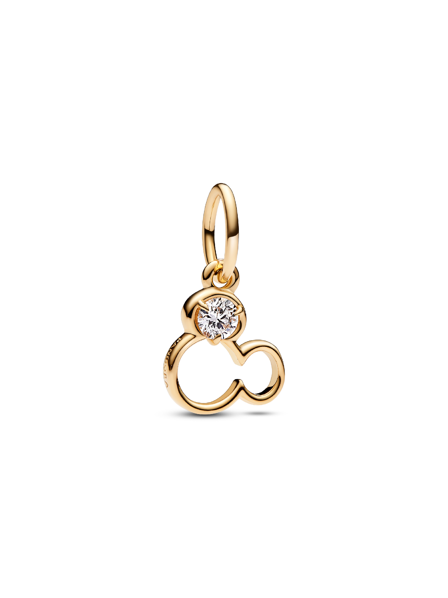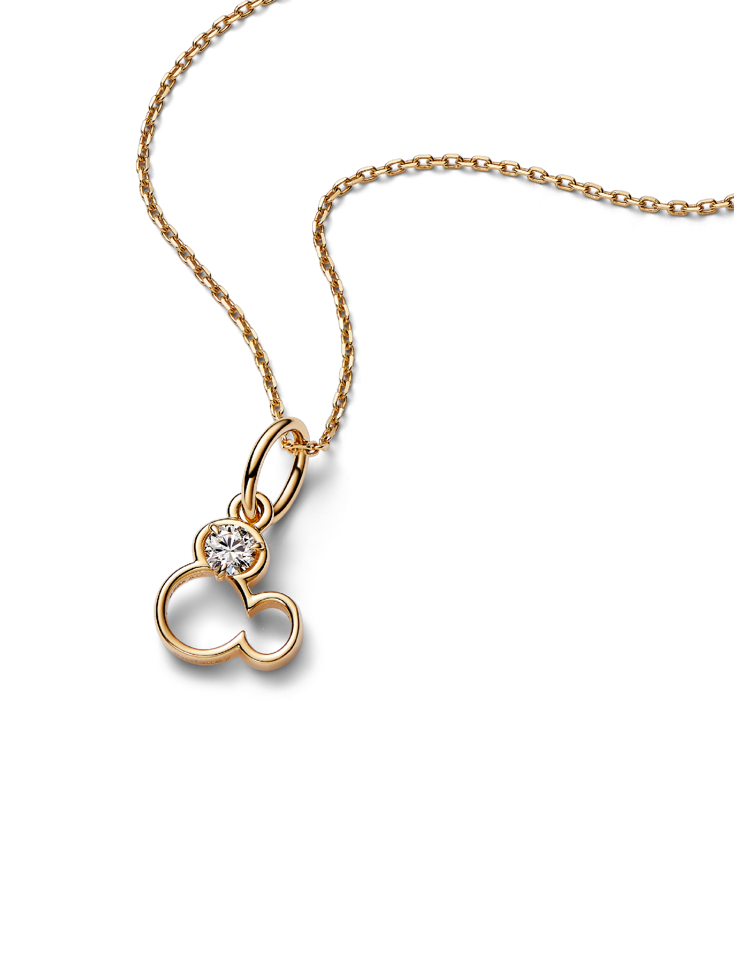 Add the ultimate Disney icon to your collection with our Disney Mickey Mouse Silhouette Lab-Grown Diamond Dangle Charm. Mickey Mouse's classic silhouette is crafted in pure 14k gold and features a radiant bezel set lab-grown diamond in his ear.
