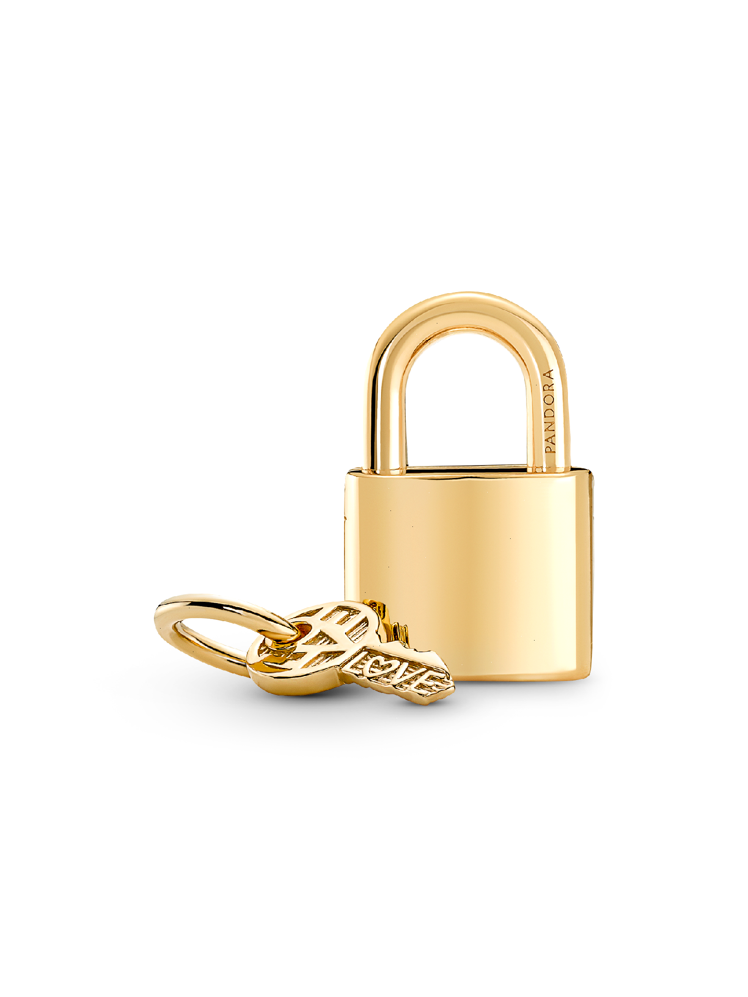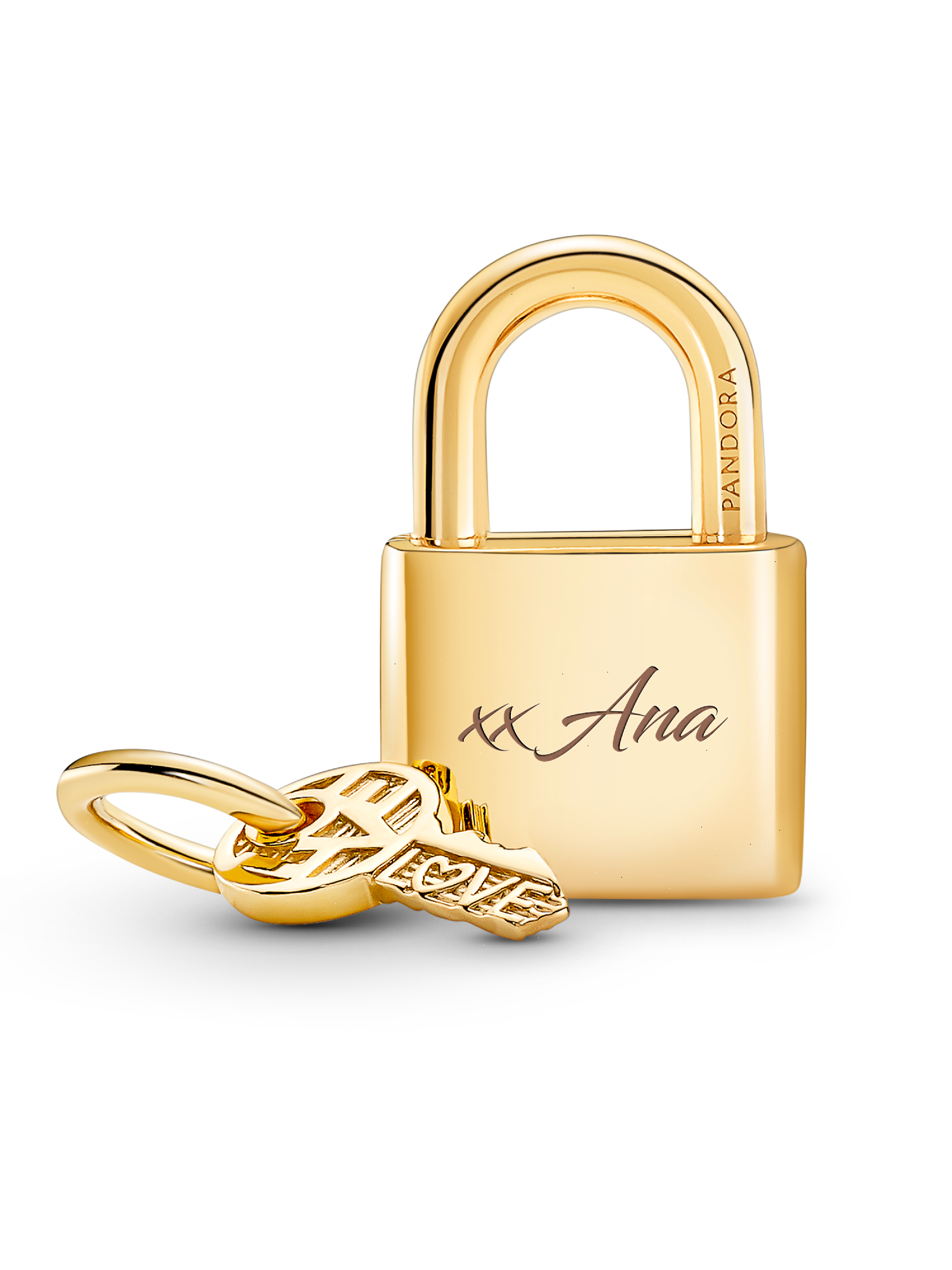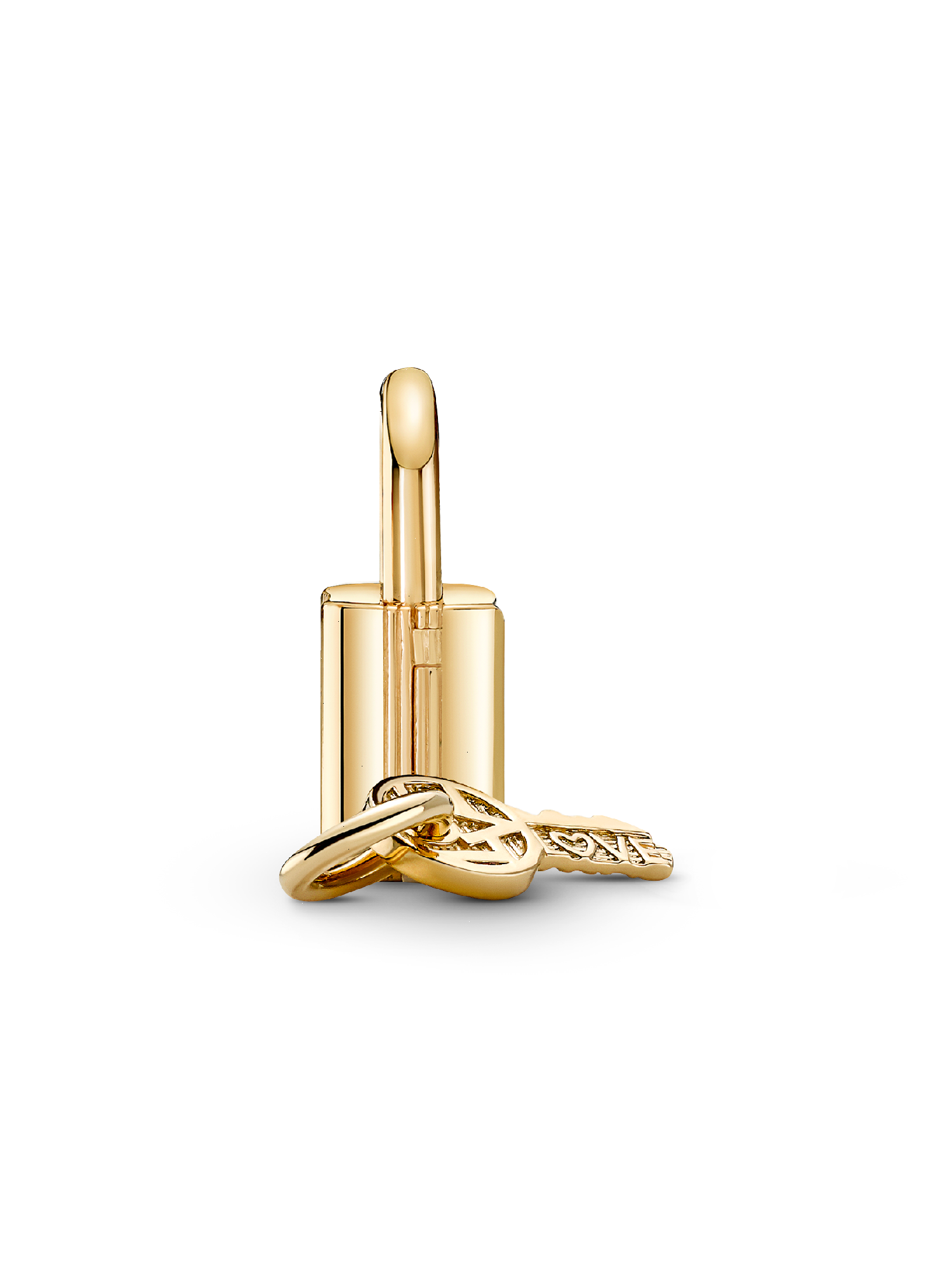 Cherish the special connection you share with loved ones with this Padlock and Key Dangle Charm. Featuring two parts, the key is also a charm in itself. Place it next to the padlock and style the two together on your jewelry, or gift it to a loved one, so only they have the power to unlock your padlock. Inspired by the locks placed on bridges by lovers all around the world, this 14k gold-plated Padlock and Key Charm is the perfect way to capture your love. Compatible with necklaces and bracelets, wear yours around your neck as a pendant or as a charm on your bracelet and let the one you love carry the key to your padlock - and your heart. Please note: the key should not be worn inside the padlock.