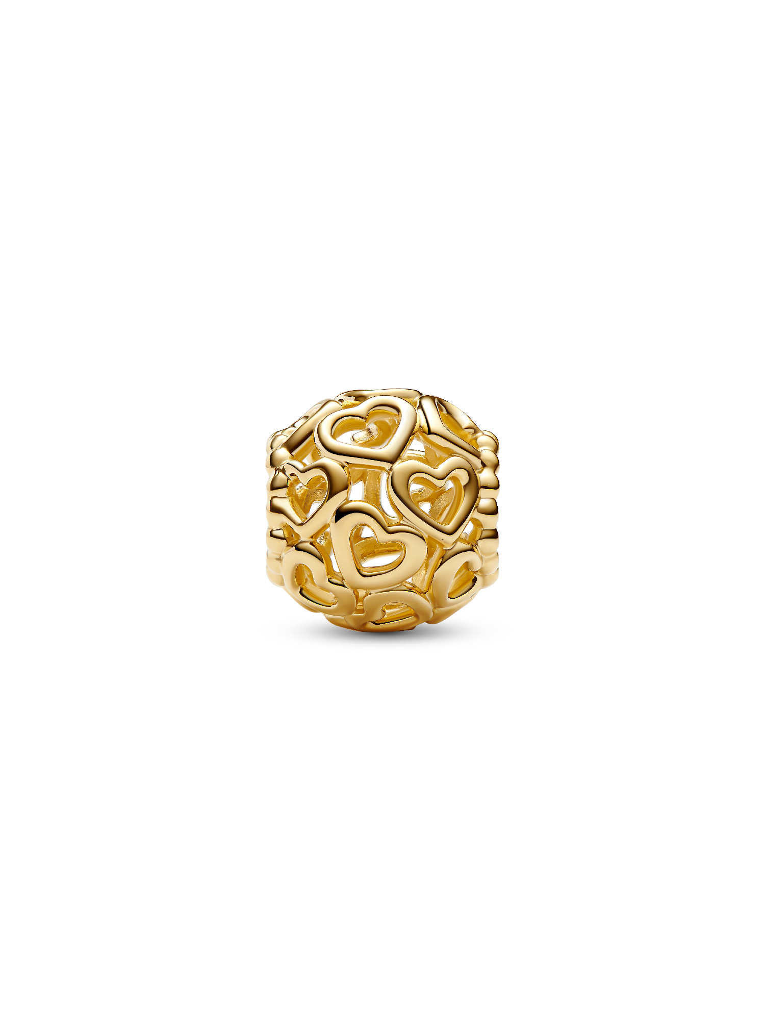 Celebrate everlasting love with this 14k gold-plated charm, featuring openwork hearts and delicate microbeading—designed to reflect the connections that make us who we are.