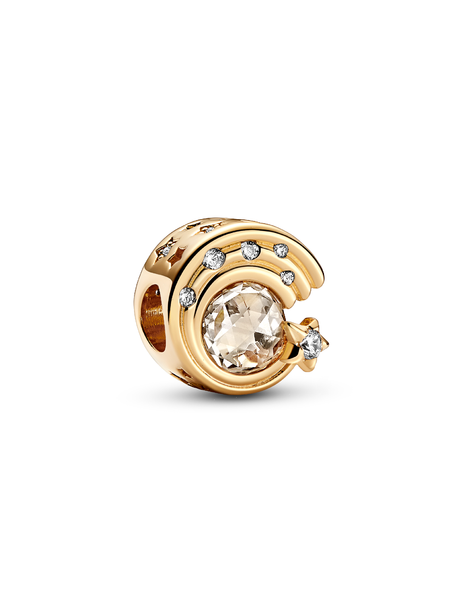 Celebrate Chinese Valentine’s Day with the Sparkling Shooting Star Charm, inspired by a tale of celestial romance. Hand-finished with 14k gold plating, it features a crescent-shaped shooting star converging on a sparkling stone, a design that symbolizes the descent of the Sky Emperor’s daughter Zhinü to meet her earthly lover, Niulang. Gift this special charm to your partner and make her feel like the star in your life.