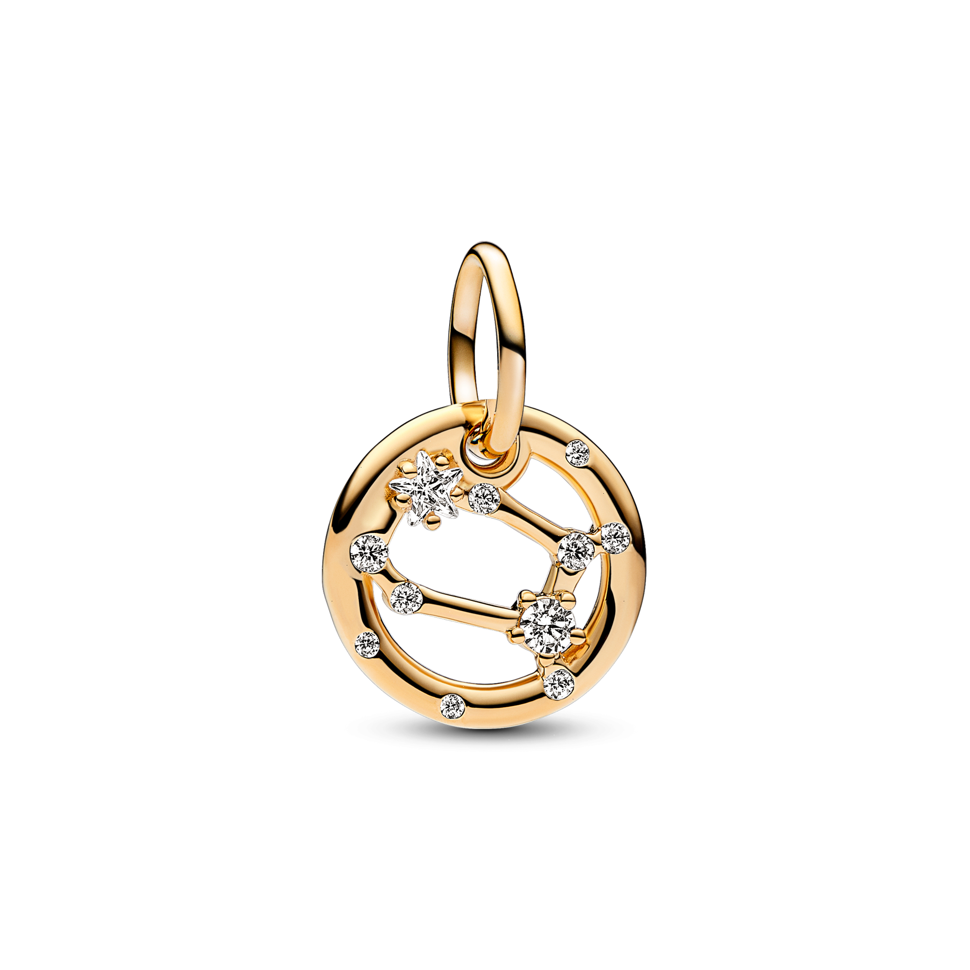 Let the stars guide your look with the Gemini Zodiac Dangle Charm. This Pandora Moments dangle charm is crafted our 14k gold-plated unique metal blend, has a circular outer frame and features clear sparkling cubic zirconia as well as the shape of the Gemini zodiac sign. The back side of the frame is engraved with "Gemini". Whimsical, indecisive and brilliant, the Gemini in your life can always be counted on to be considering both sides of the argument and weighing them up equally. Wear it as a sign of your own sign's strength or give it as a gift of appreciation to the Gemini in your life.