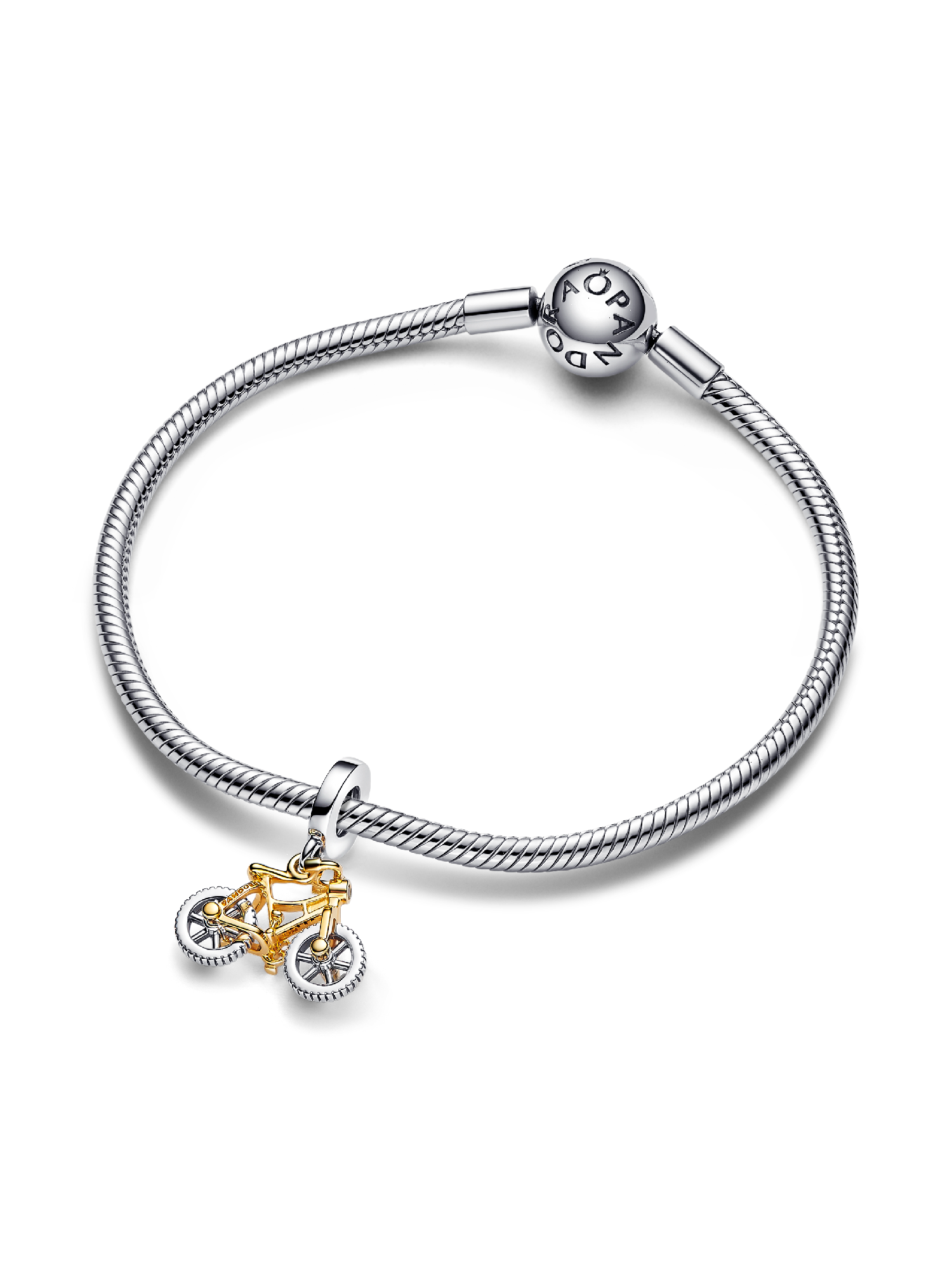 Wear the Two-tone Spinning Wheels Bicycle Dangle Charm as a symbol of fresh air and freedom. This two-toned charm features a scaled-down version of a bike with realistic details such as a saddle, handle bar, pedals, light, wheels and tires. To top it off, the wheels can actually spin. Whether you're adding this to your own collection or gifting it to a loved one, this bike charm channels the freewheeling adventures to be found when exploring on a bicycle.