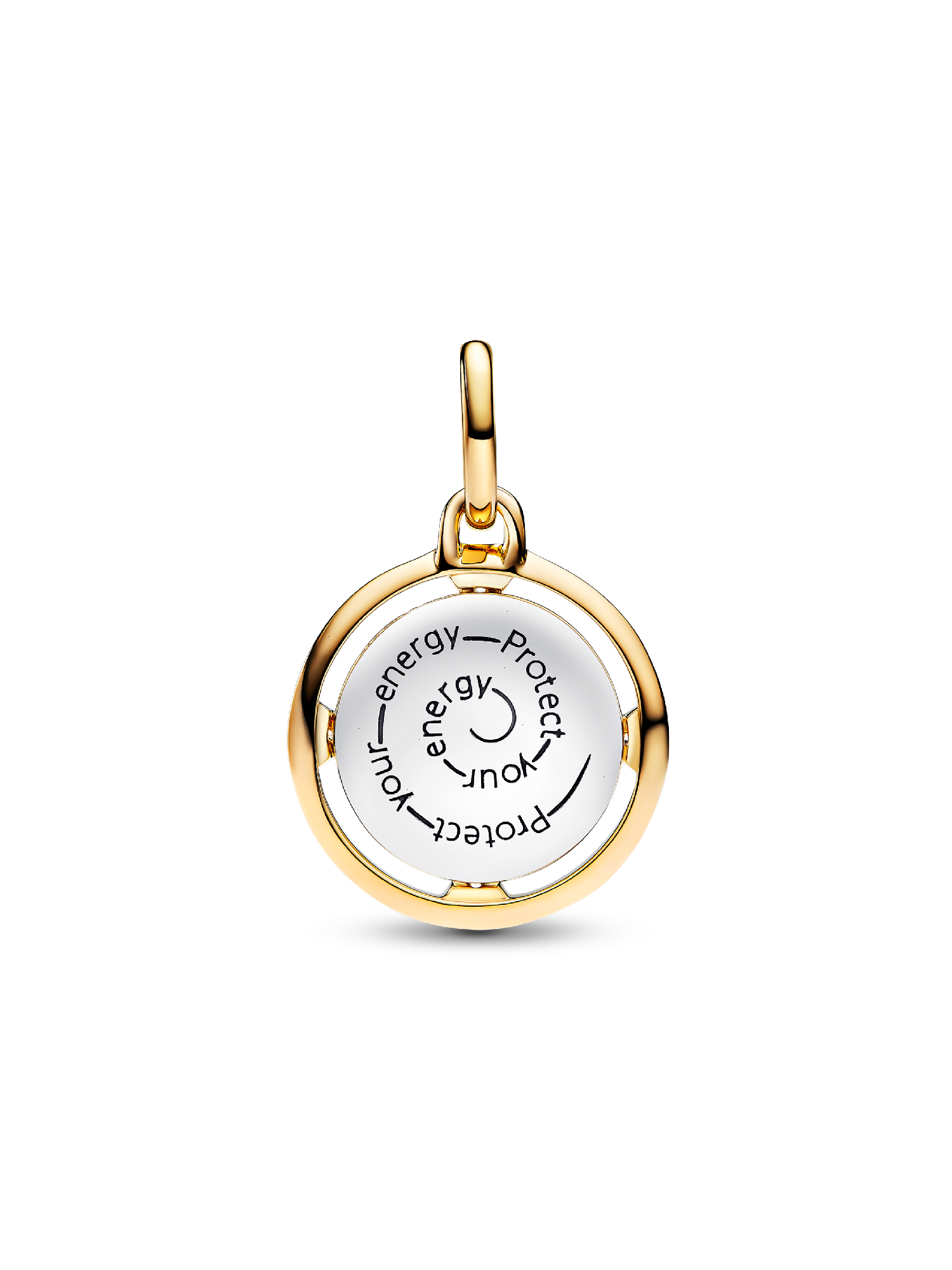 Bring positive energy and productivity into your life with our 14k gold-plated bee medallion. Our dual-sided charm features an imprinted bee with four triangular pointers set with sparkling stones on one side and the engraved message "Protect your energy" on the other. Add it to your collection to symbolize that life is all about meaningful work, positivity and balance. This medallion charm can be styled on Pandora Moments charm holders and openable links on Pandora ME carriers.