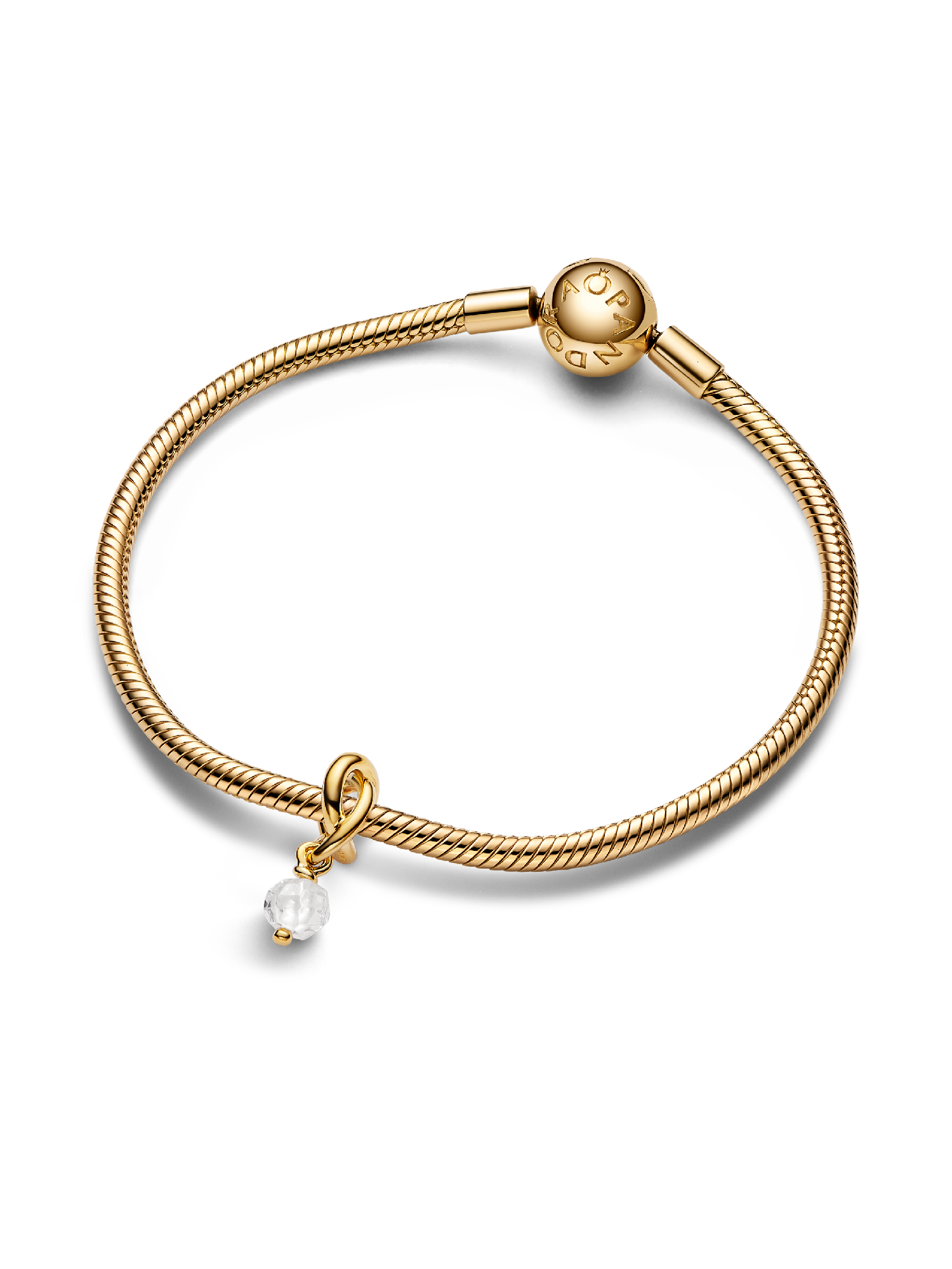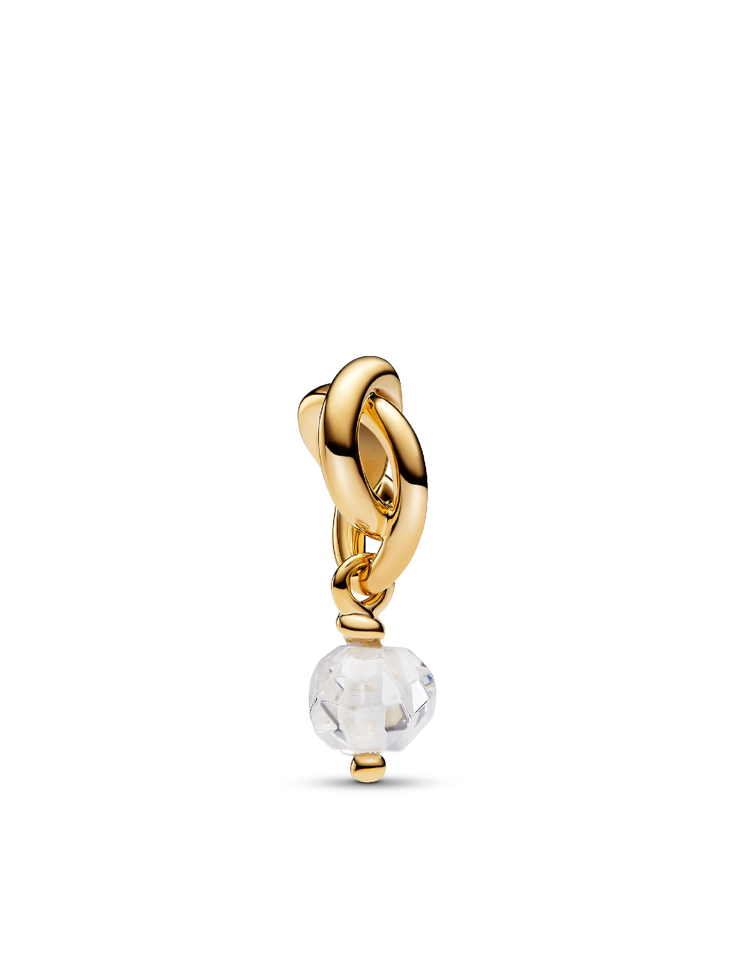 Wear a symbol of forever, that's personal to you. This 14k gold-plated dangle charm is made up of a triple knotted circle that intertwines to resemble an infinity sign. The twist carries a radiant clear stone which dangles from the charm. Wear yours to add a drop of color to your carrier, or gift it to the one you want in your life forever.