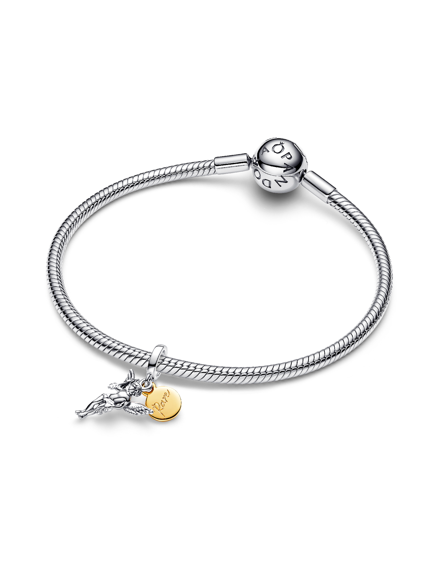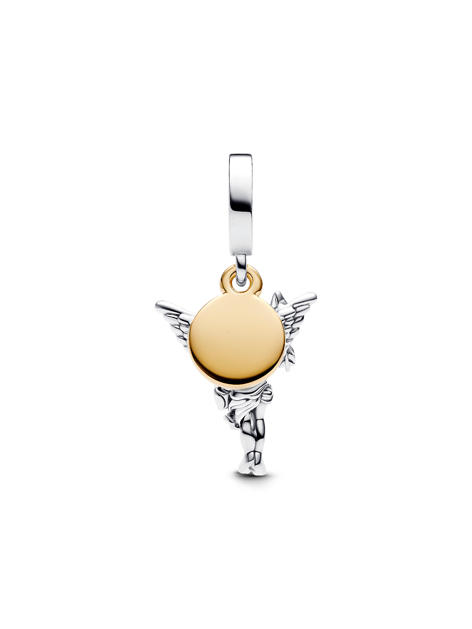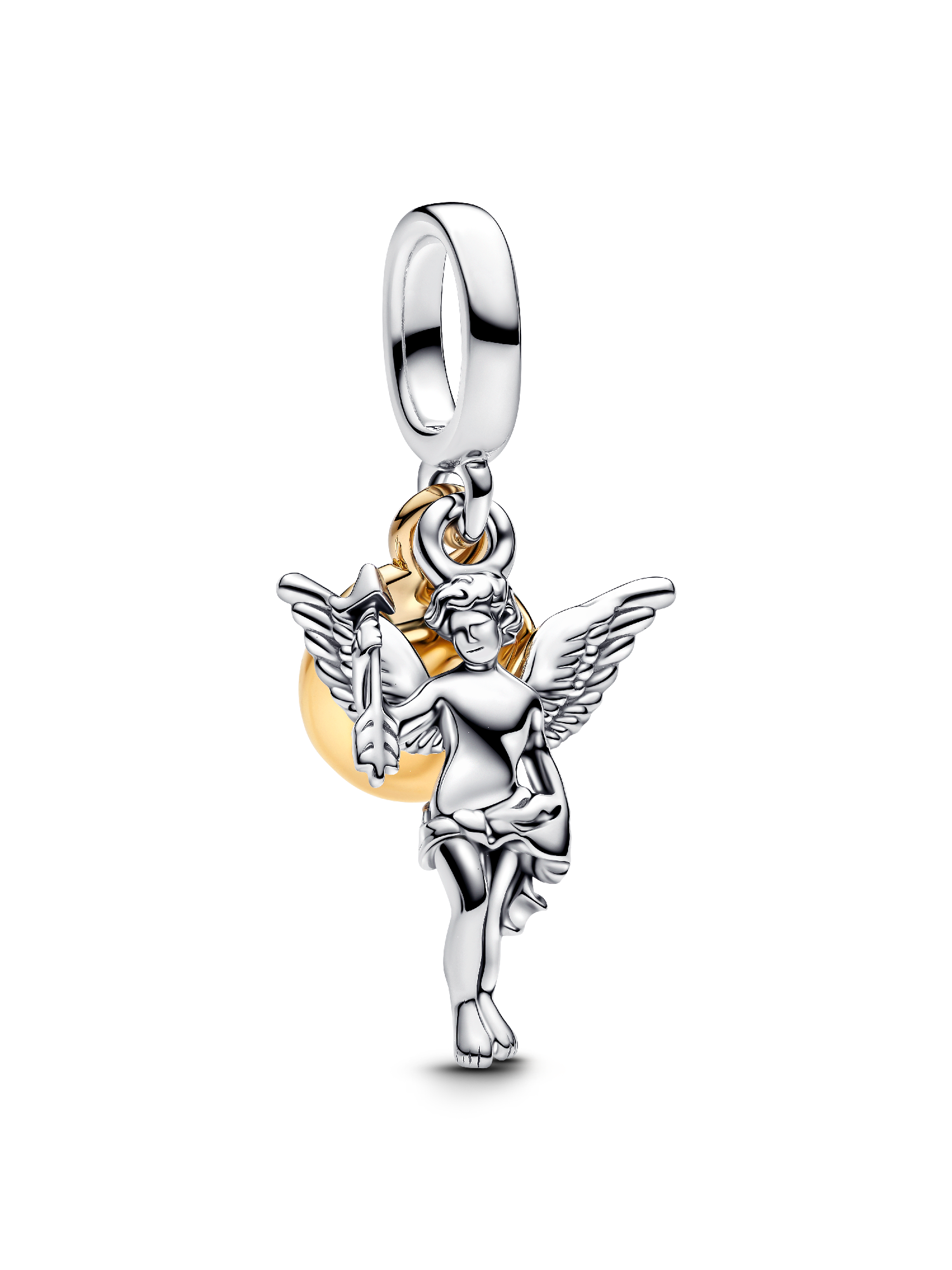 Fall in love every day with our Cupid Dangle Charm, hand-finished in sterling silver and 14k gold plating. Engraved with the message "Rare", this charm features the mythic god of love, complete with sculpted wings and arrow in hand. Add Cupid to your collection as a daily reminder that love can strike at the most unexpected moments.