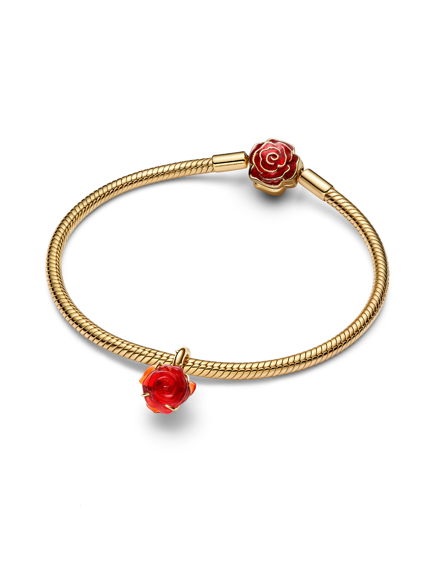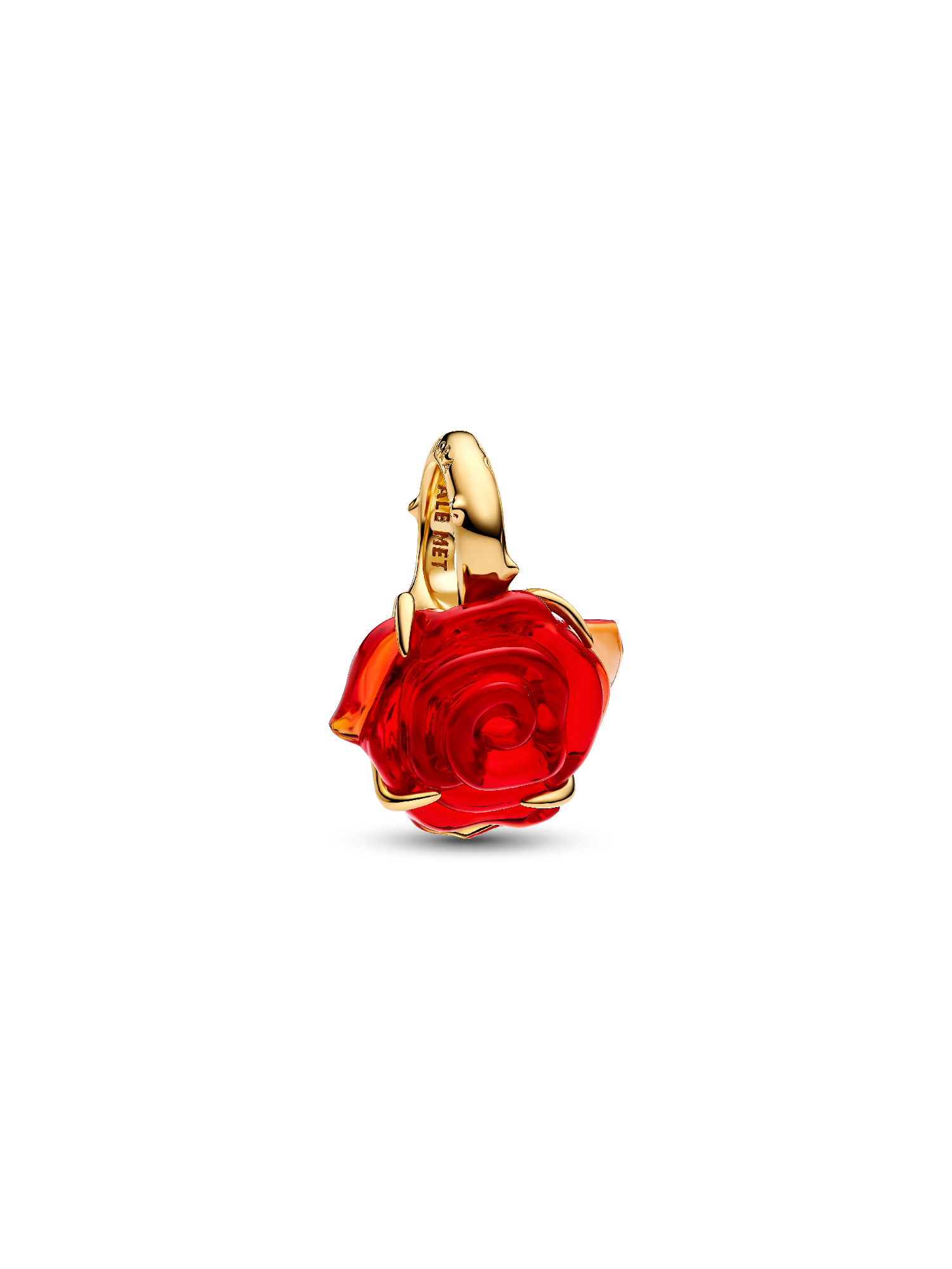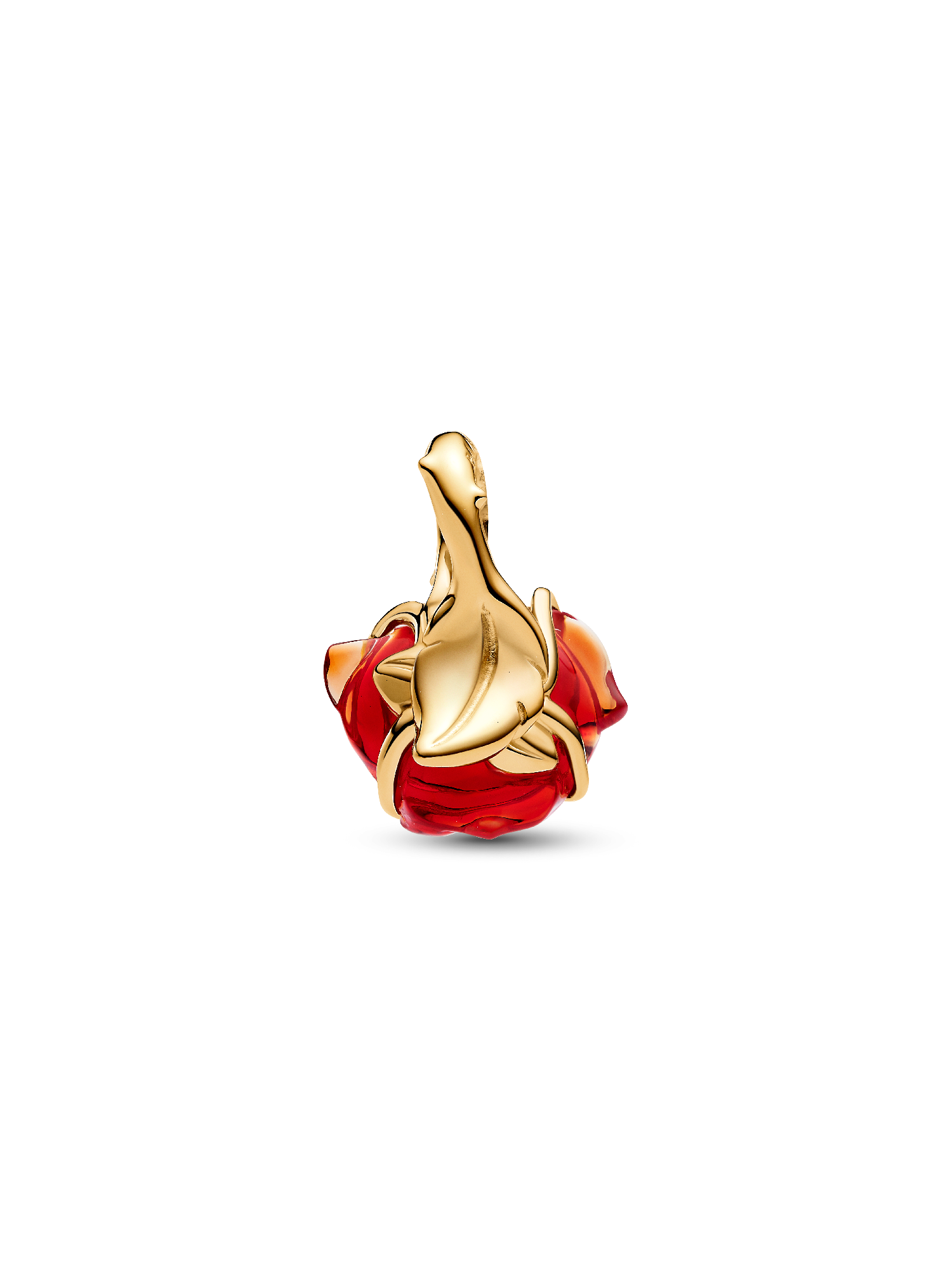 Inspired by Disney’s Beauty and the Beast, this 14k gold-plated charm features a red Murano glass rose with a thorny stem bail. A symbol of true beauty, love and kindness that breaks all curses.