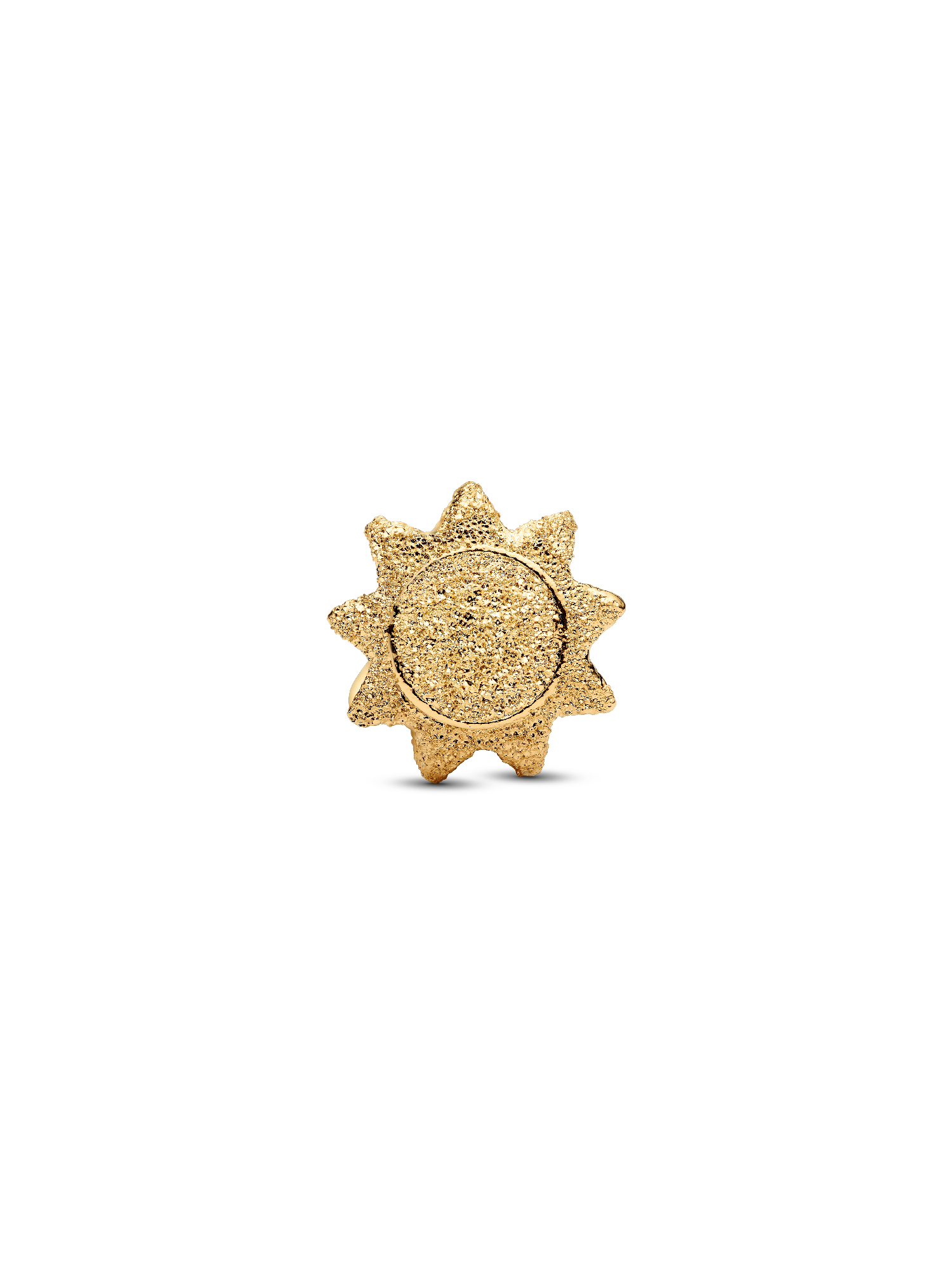 Small symbols make a big impact. Light up the room with our 14k gold-plated mini sun charm. Its diamond-point texture reminds you that when you radiate warmth, the world shines back.