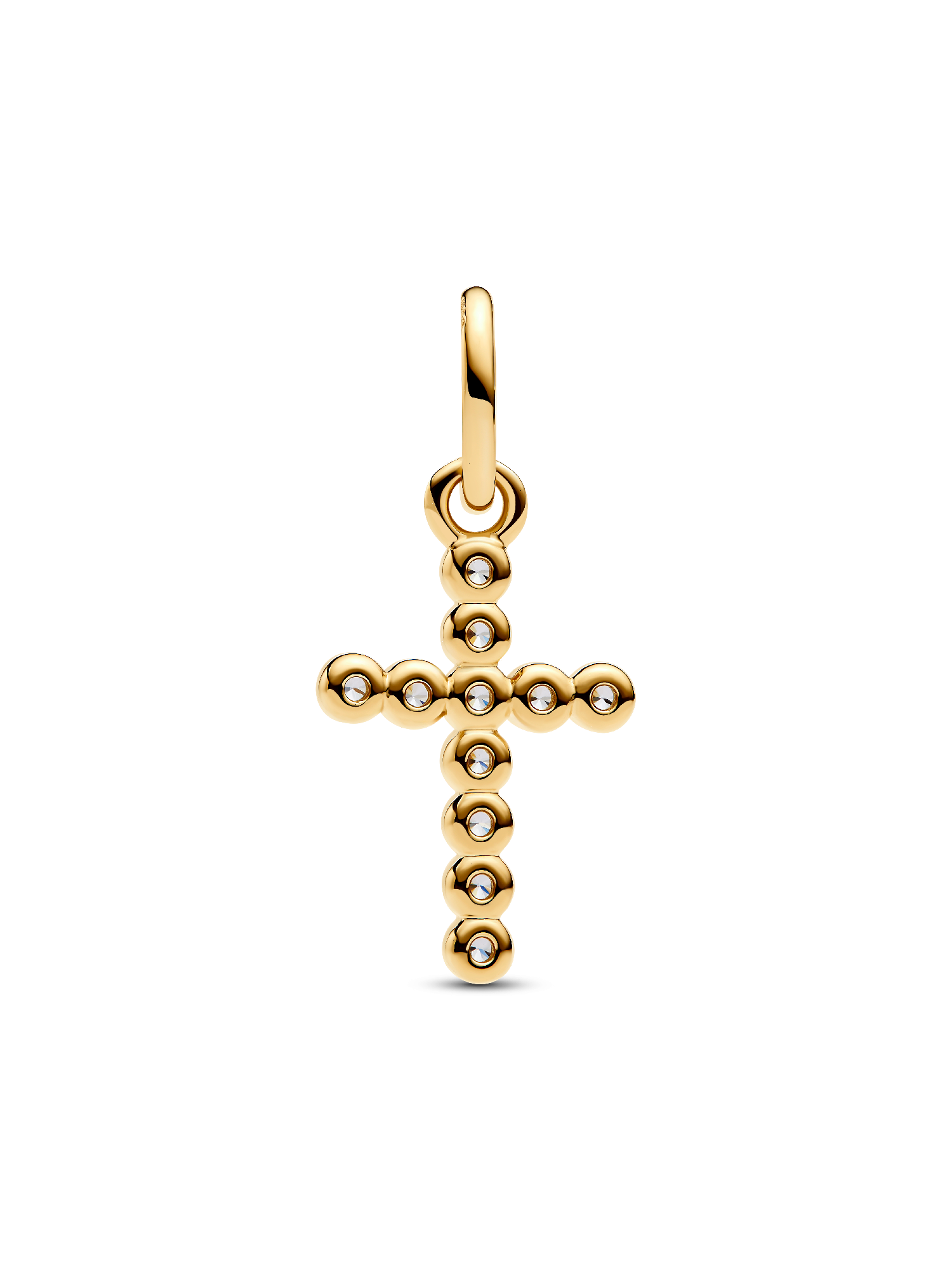 Let your faith shine with this symbol of hope and love. Clear sparkling cubic zirconia form a cross set in warm 14k gold plating. Perfect for layering or wearing solo as a meaningful statement piece.