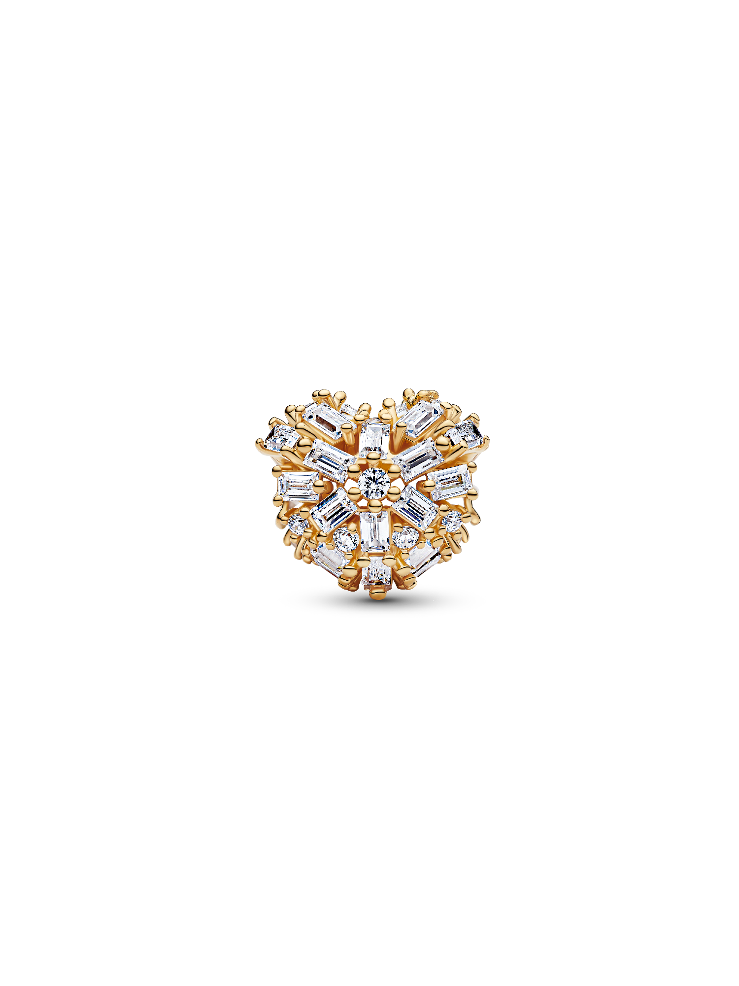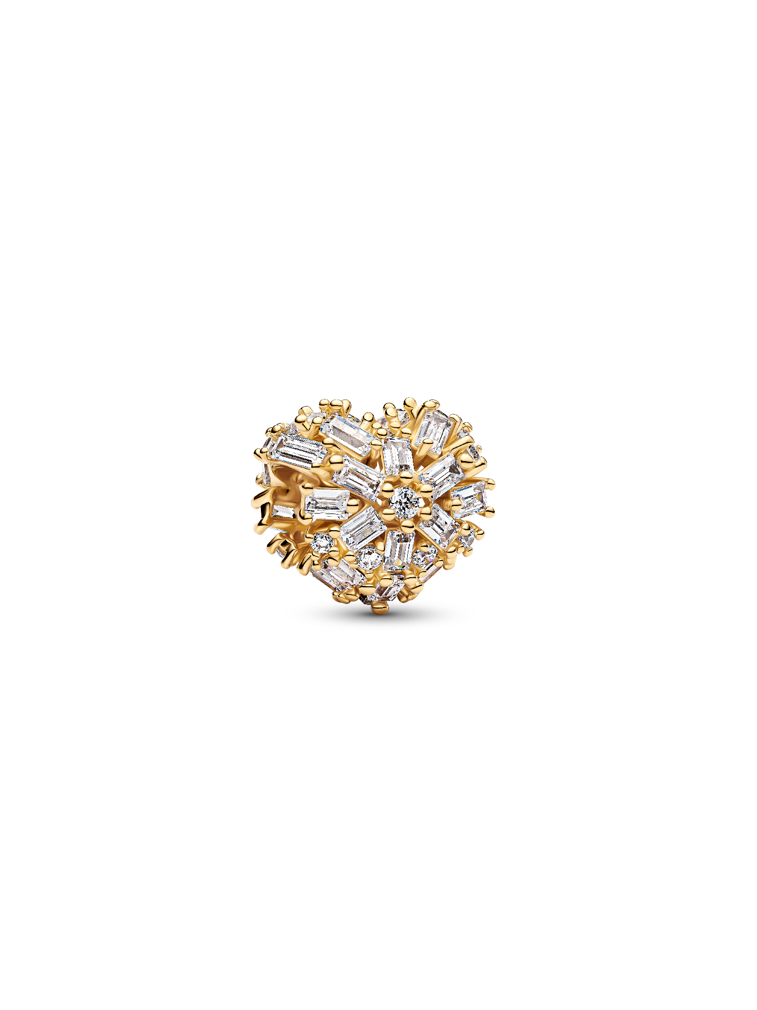 Let your love shine bright. Crafted in 14k gold plating, this sparkling charm features clear cubic zirconia forming a heart that catches the light from every angle — a timeless symbol of warmth and kindness.