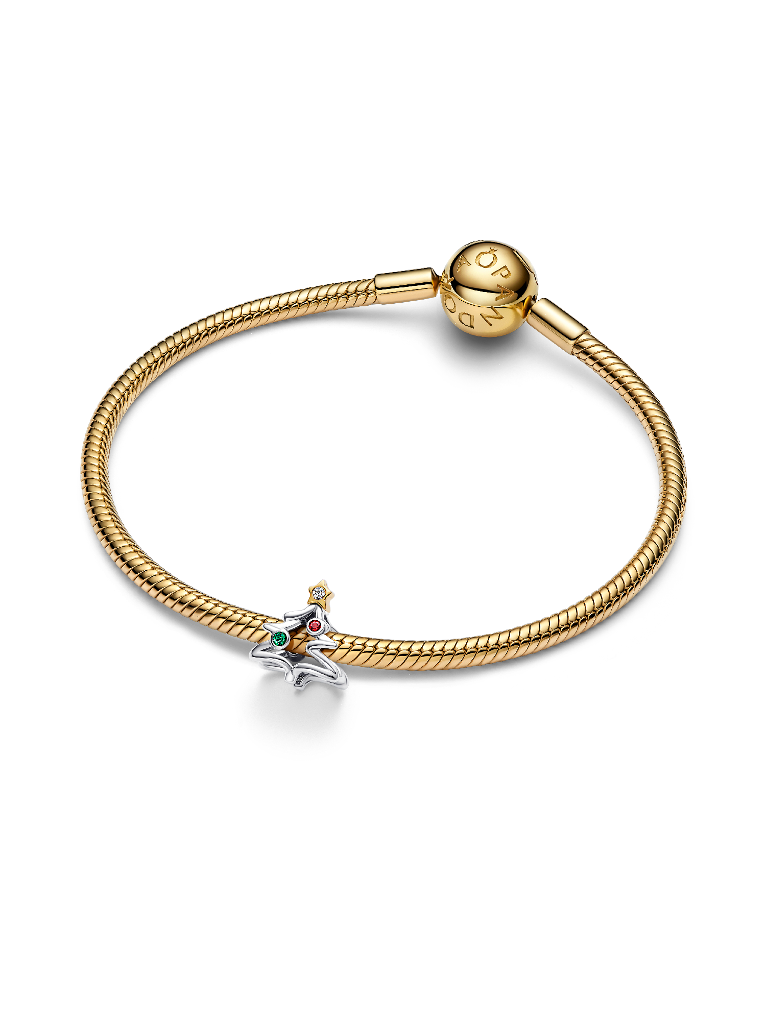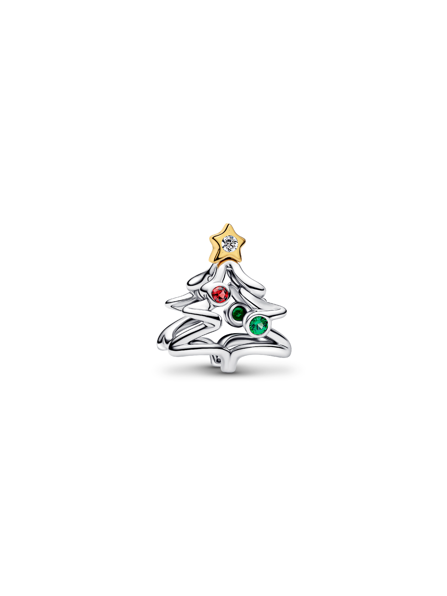 A festive classic, reimagined. This openwork Christmas Tree Charm combines sterling silver and 14k gold plating with vibrant red and green man-made crystals and a star topper. Designed to brighten up your holiday look.