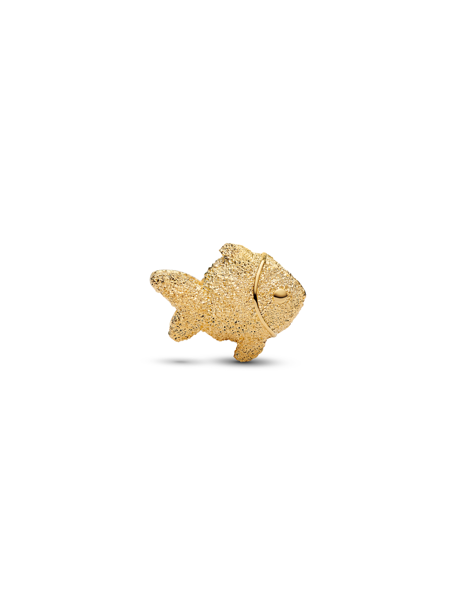 Go with the flow. This 14k gold-plated mini fish charm shines with a diamond-point texture, symbolizing freedom and calm energy.