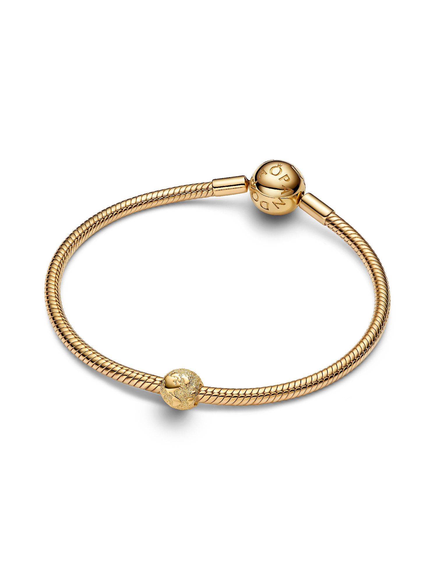 Explore the world in style. This 14k gold-plated mini globe charm sparkles with a diamond-point texture, symbolizing wanderlust and connection.