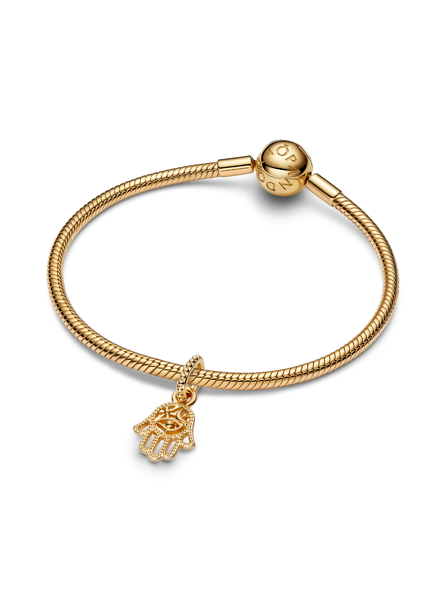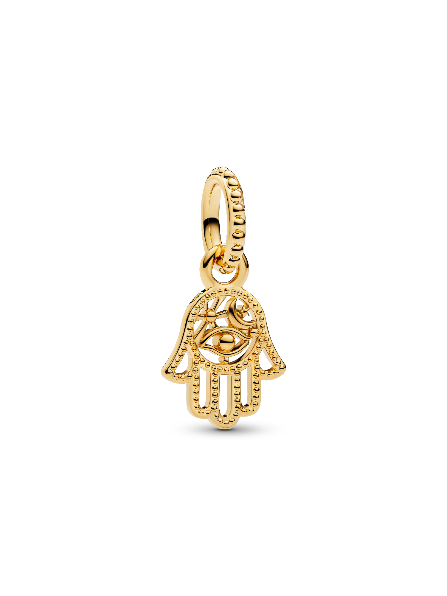 Embrace protection and positivity with this intricate charm, featuring a detailed Hamsa hand with symbolic eye and moon motifs – a meaningful nod to strength and light.
