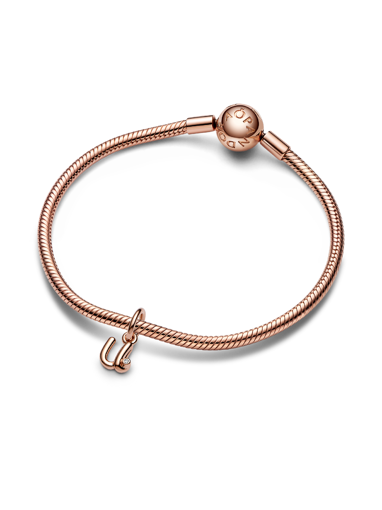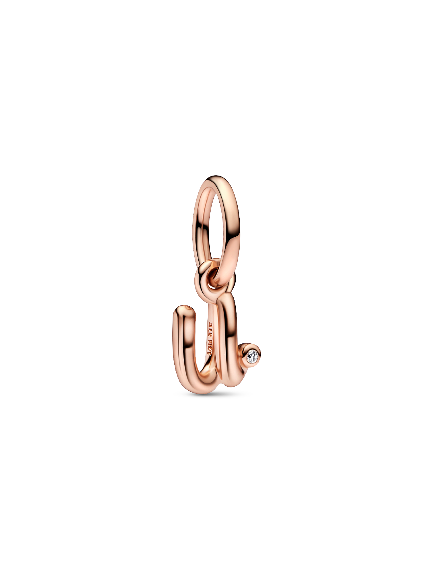Spell it out with our Letter u Script Alphabet Dangle Charm. Inspired by bent wire and the movement of a pen across paper, this 14k rose gold-plated charm features a three-dimensional letter U that looks handwritten. The end of the lower-case letter is playfully punctuated with a round brilliant-cut clear cubic zirconia, representing that there is something precious in all of us. Wear it as a symbol of who you are or a reminder of someone you love.