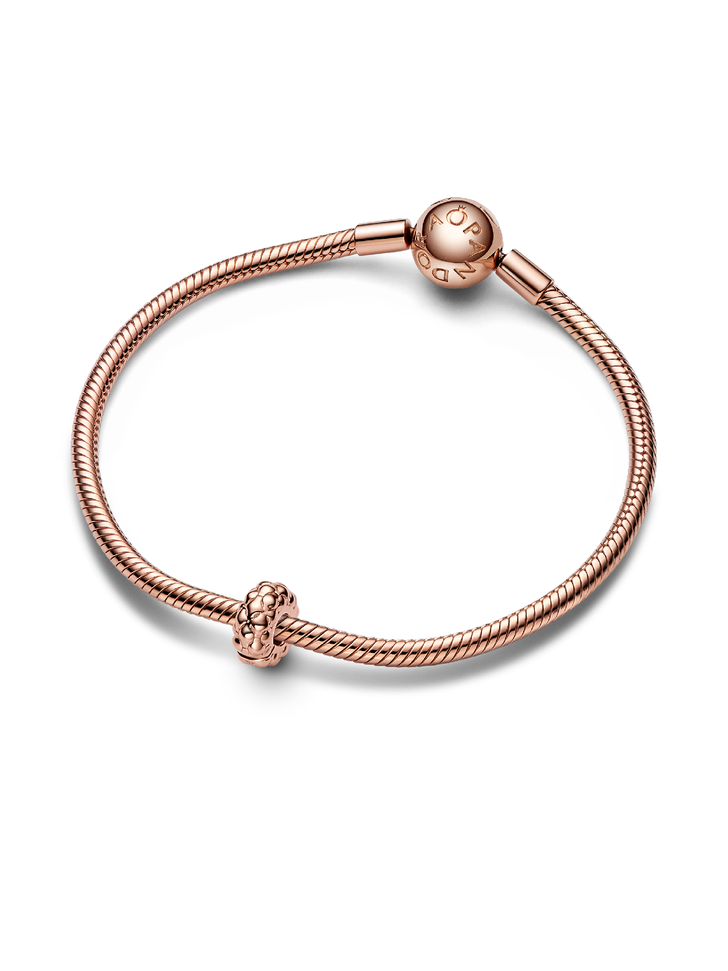 Bring even more of the iconic studded texture into your look with the Studded Pandora Clip Charm. With its pyramid and spherical stud texture and a thin profile, this clip charm in our 14k rose gold-plated unique metal blend will feel right at home on your studded chain bracelet, as its pattern echoes the new Pandora icon. The 14k rose gold-plated charm features silicone grips on the inside and cannot be styled on threads, so it will stay fixed in one place on the chain as you move, while spacing out your charms. Create a camouflage-style look by adding it to the studded chain for a bold take.