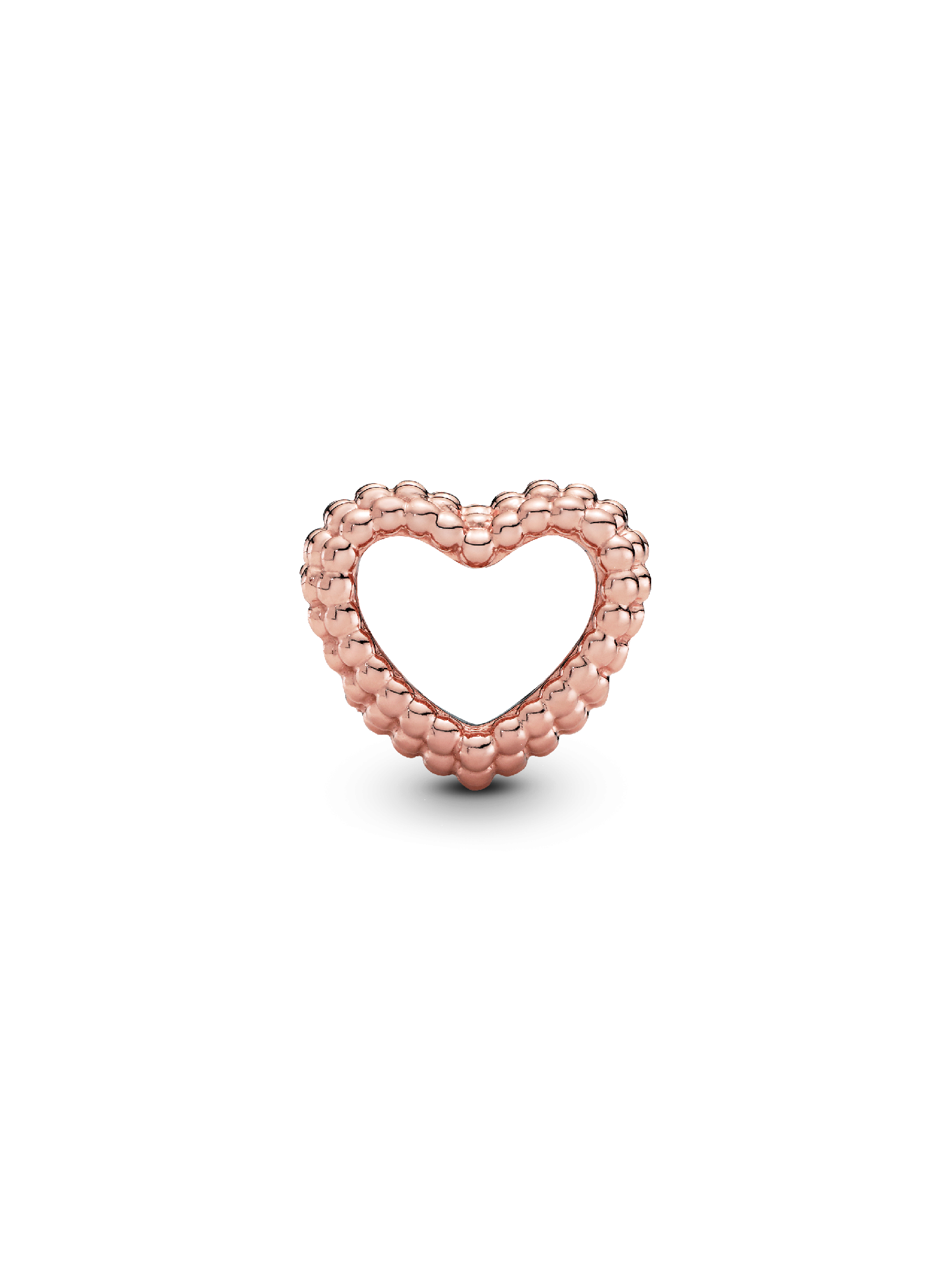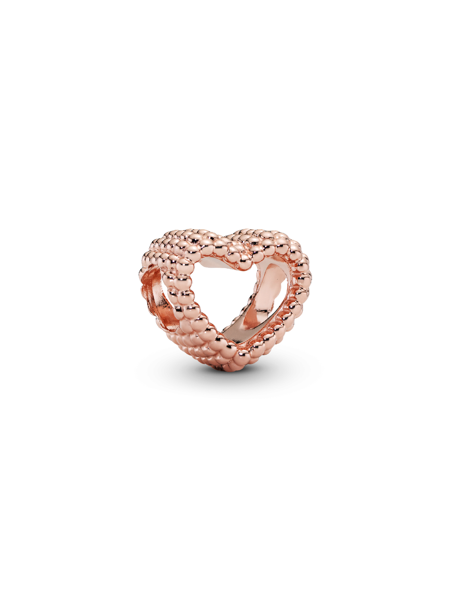 Feel the love with our 14k rose gold-plated Beaded Open Heart Charm, perfect for adding depth and dimension to a charm bracelet. The open design is minimally detailed with a beaded silhouette. Thread it on a favourite Pandora Moments bracelet or bangle, adding other pieces that tell your story in a way that's uniquely you.