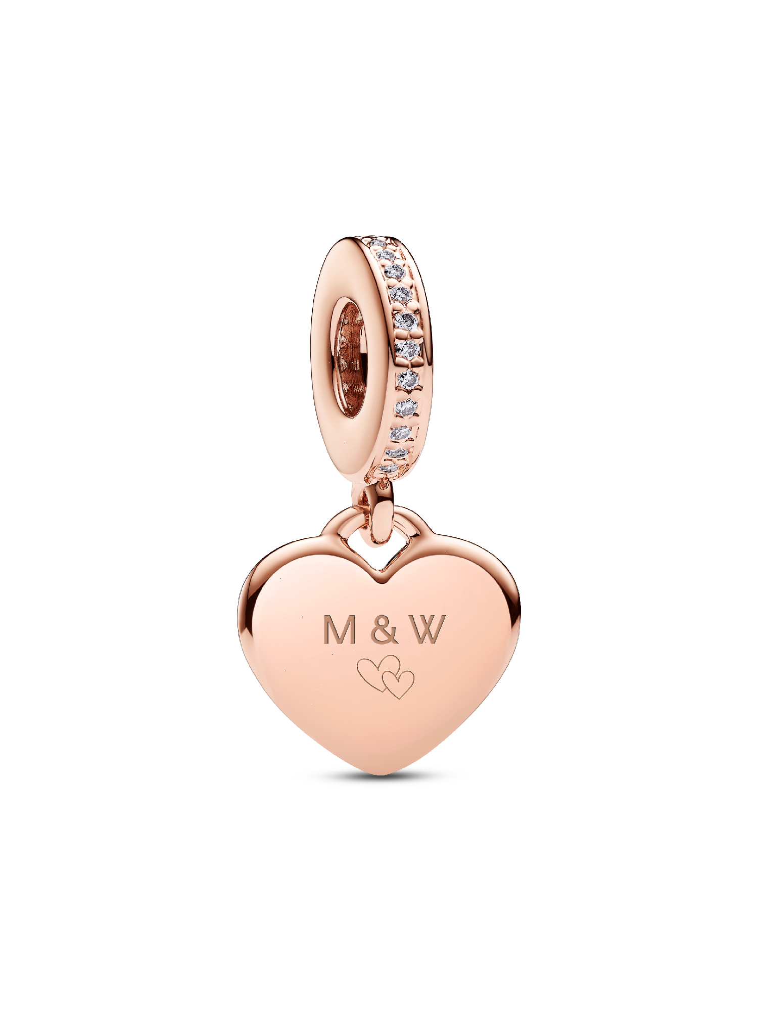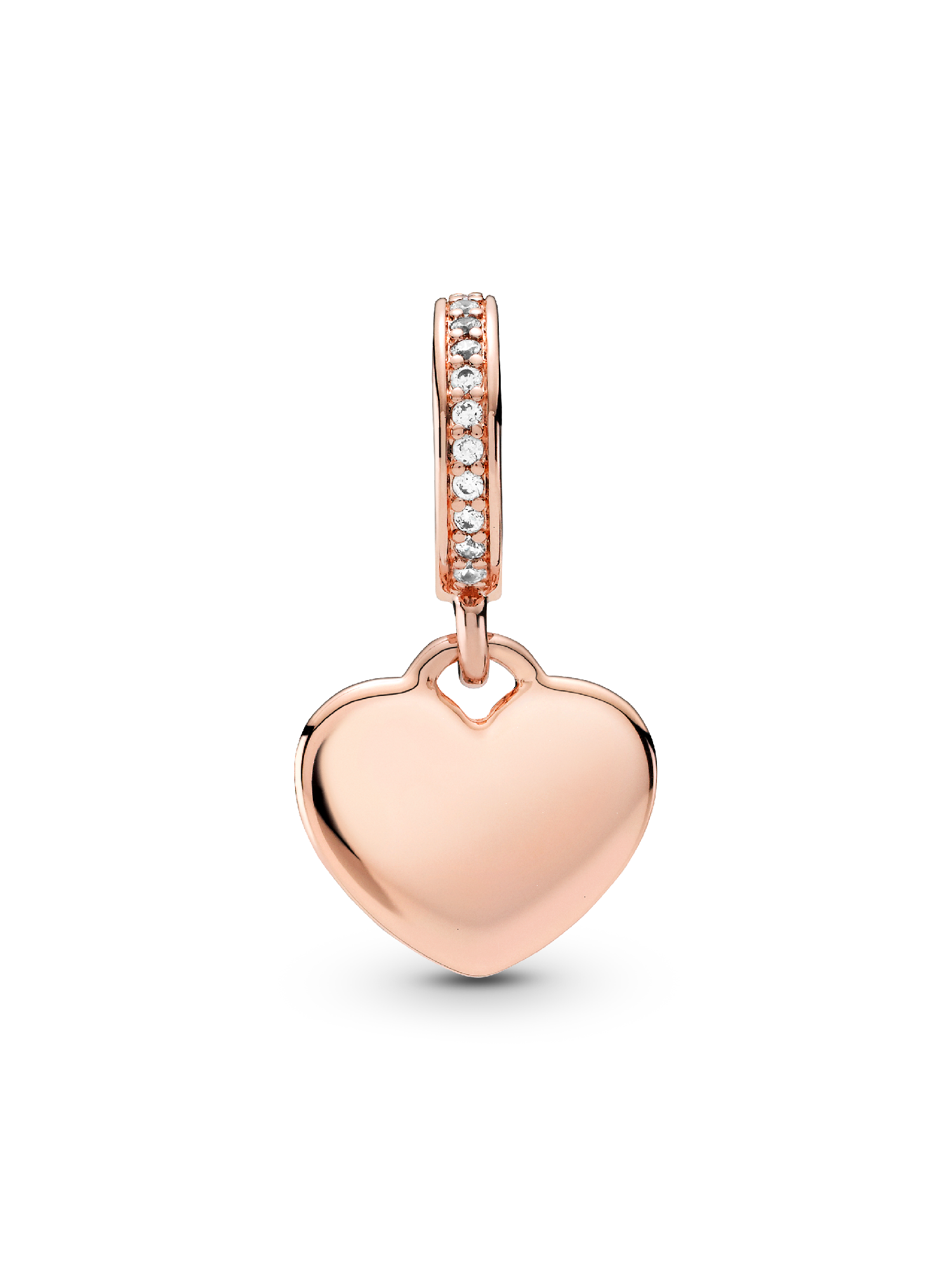 Spread the feeling of love with the Engravable Heart Tag Dangle Charm. Hand-finished in 14k rose gold plating, this polished heart-shaped dangle is engravable on the front and back and features sparkling clear stones on the bail. Customize this charm with a personal message as a token of self-love or give as a gift and add a heartfelt engraving to show someone close to you that you care.