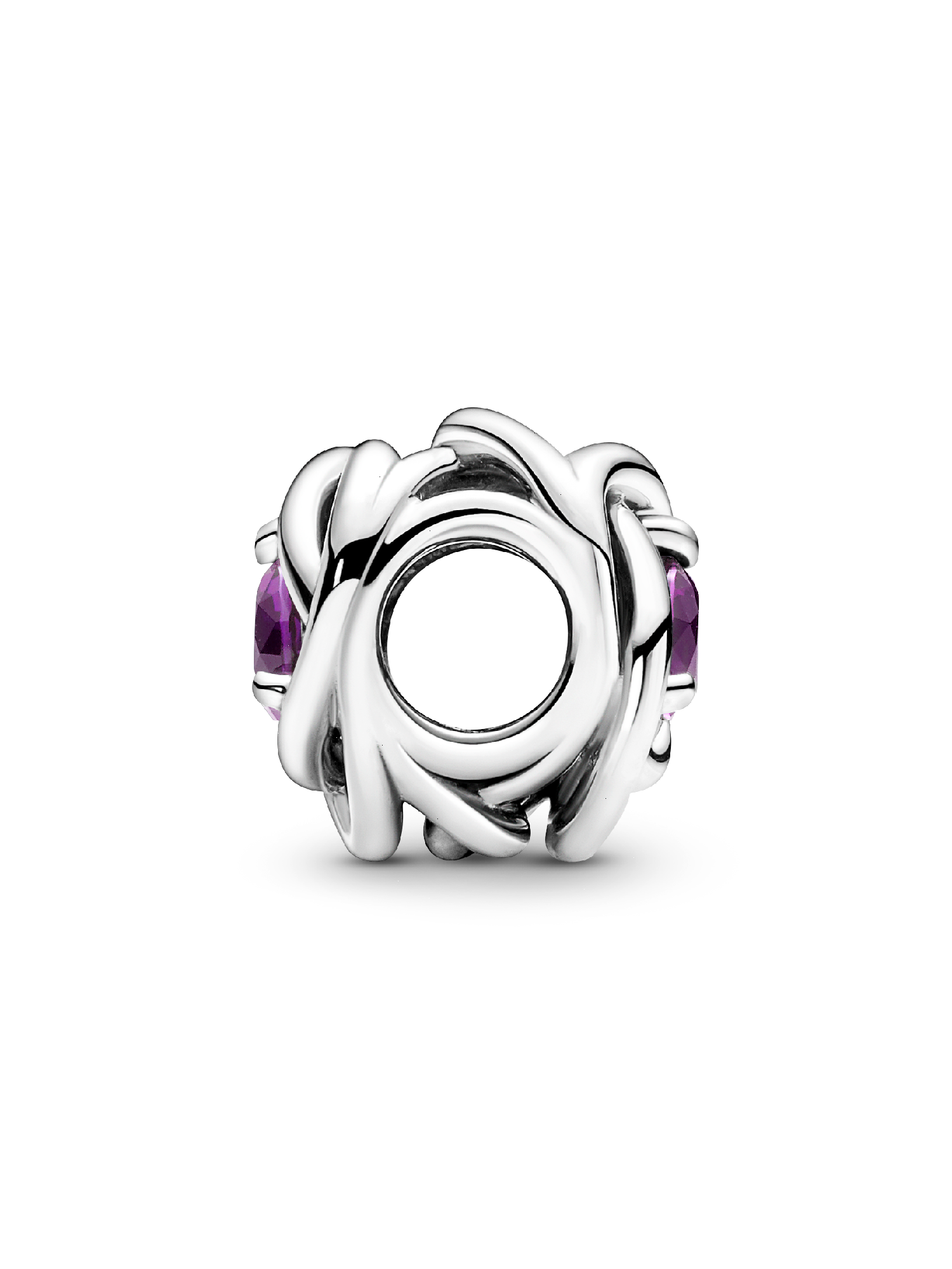 Add a pop of color to your bracelets and pendants with this Purple Eternity Circle Charm. This special piece is made in the shape of an infinity braid and is set with a deep purple crystal at its center. Symbolizing eternity, add this sparkling charm to your styling to give your everyday jewelry a bright update.