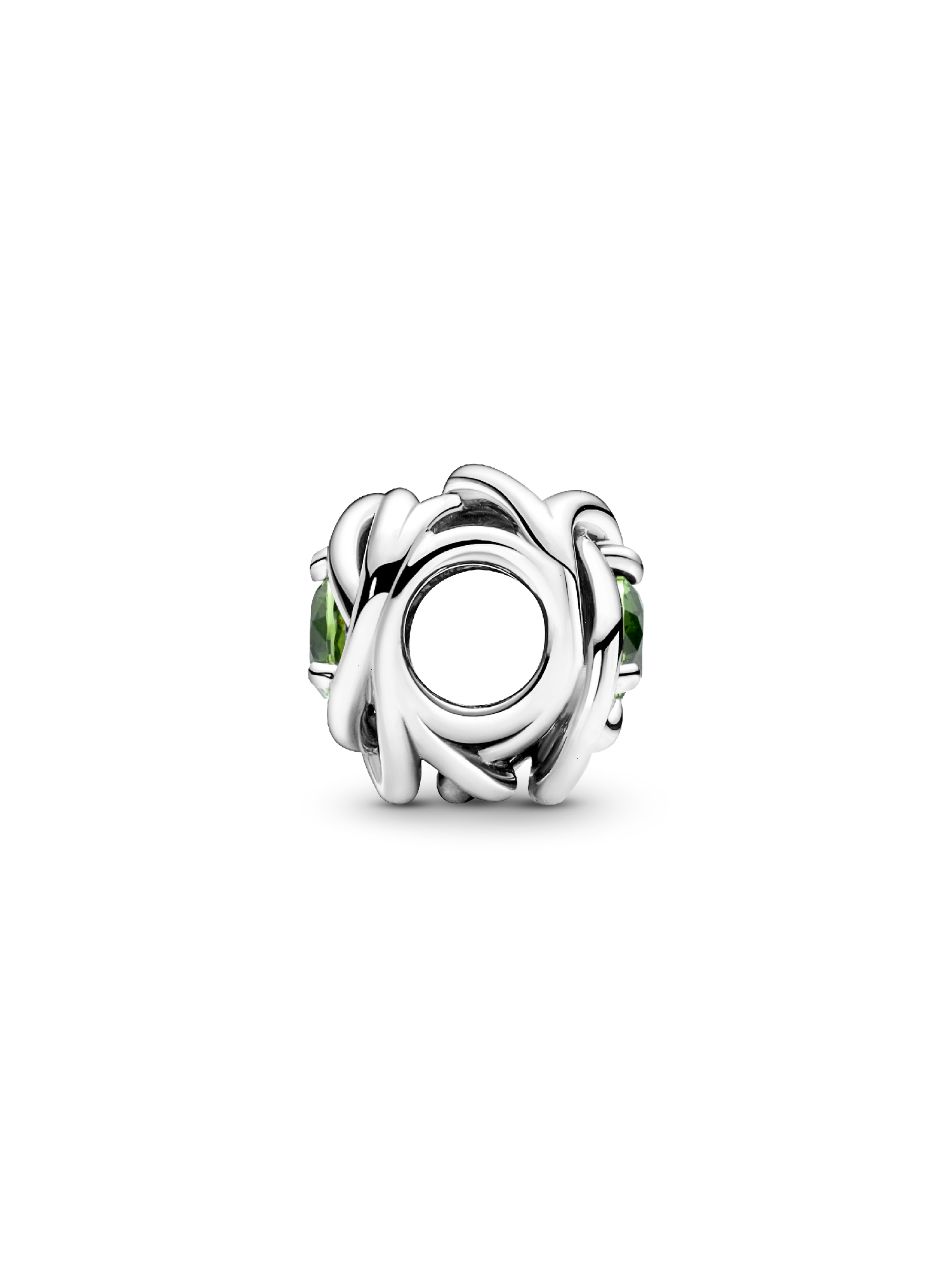 Add a pop of color to your bracelets and pendants with this Spring Green Eternity Circle Charm. This special piece is made in the shape of an infinity braid and is set with a vibrant green crystal at its center. Symbolizing eternity, add this bright charm to your styling to give your everyday jewelry a special update.