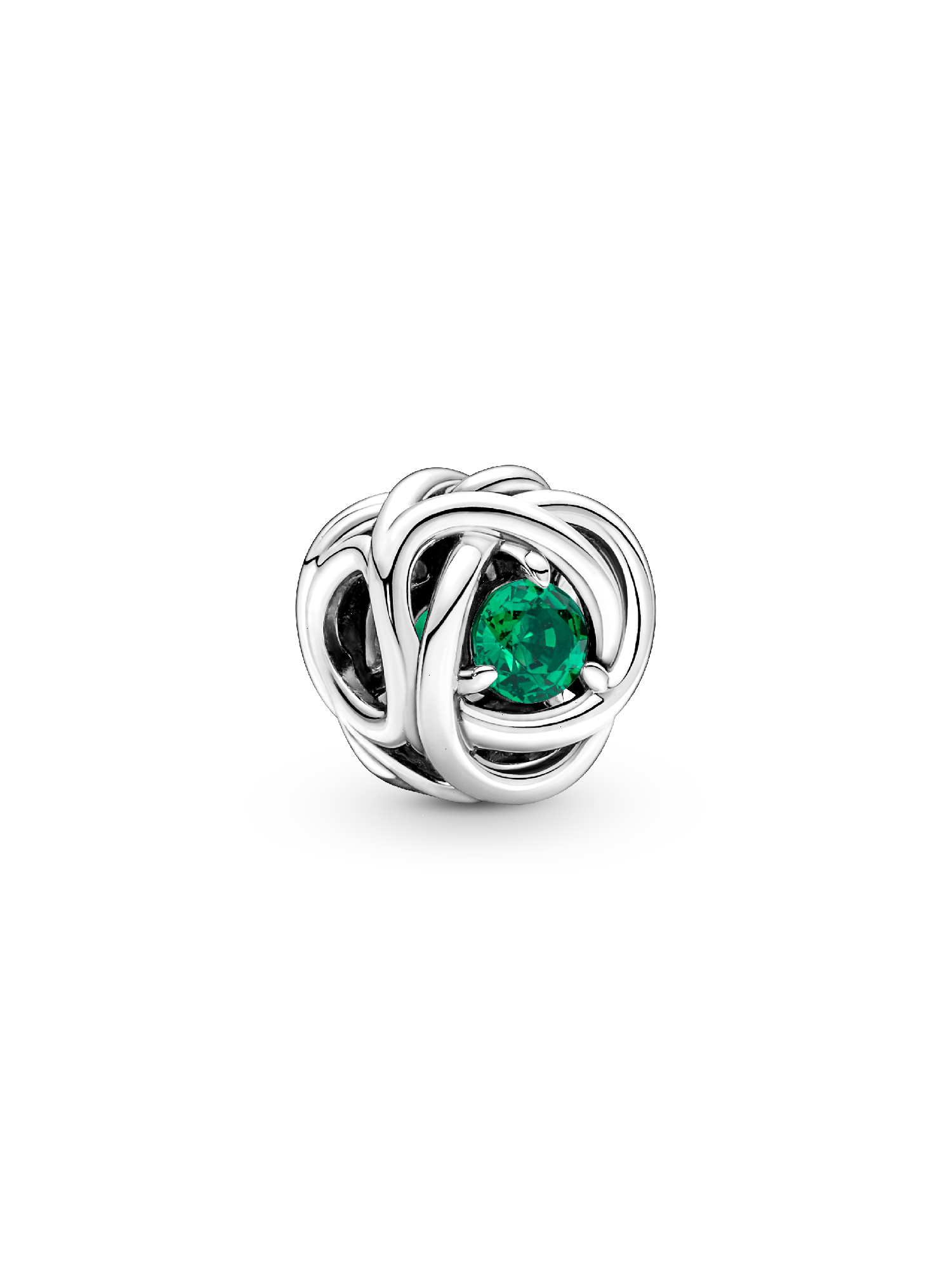 Add a pop of color to your bracelets and pendants with this Royal Green Eternity Circle Charm. This special piece is made in the shape of an infinity braid and is set with a deep green crystal at its center. Symbolizing eternity, add this sparkling charm to your styling to give your everyday jewelry a bright update.