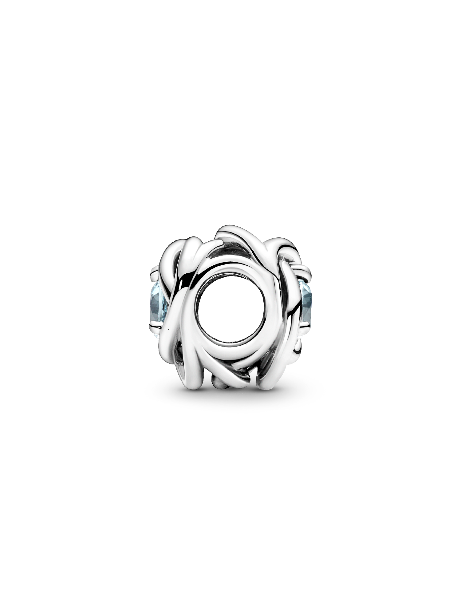 Add a pop of color to your bracelets and pendants with this Sea Aqua Blue Eternity Circle Charm. This special piece is made in the shape of an infinity braid and is set with a aquamarine-colored crystal at its center. Symbolizing eternity, add this sparkling charm to your styling to give your everyday jewelry a bright update.