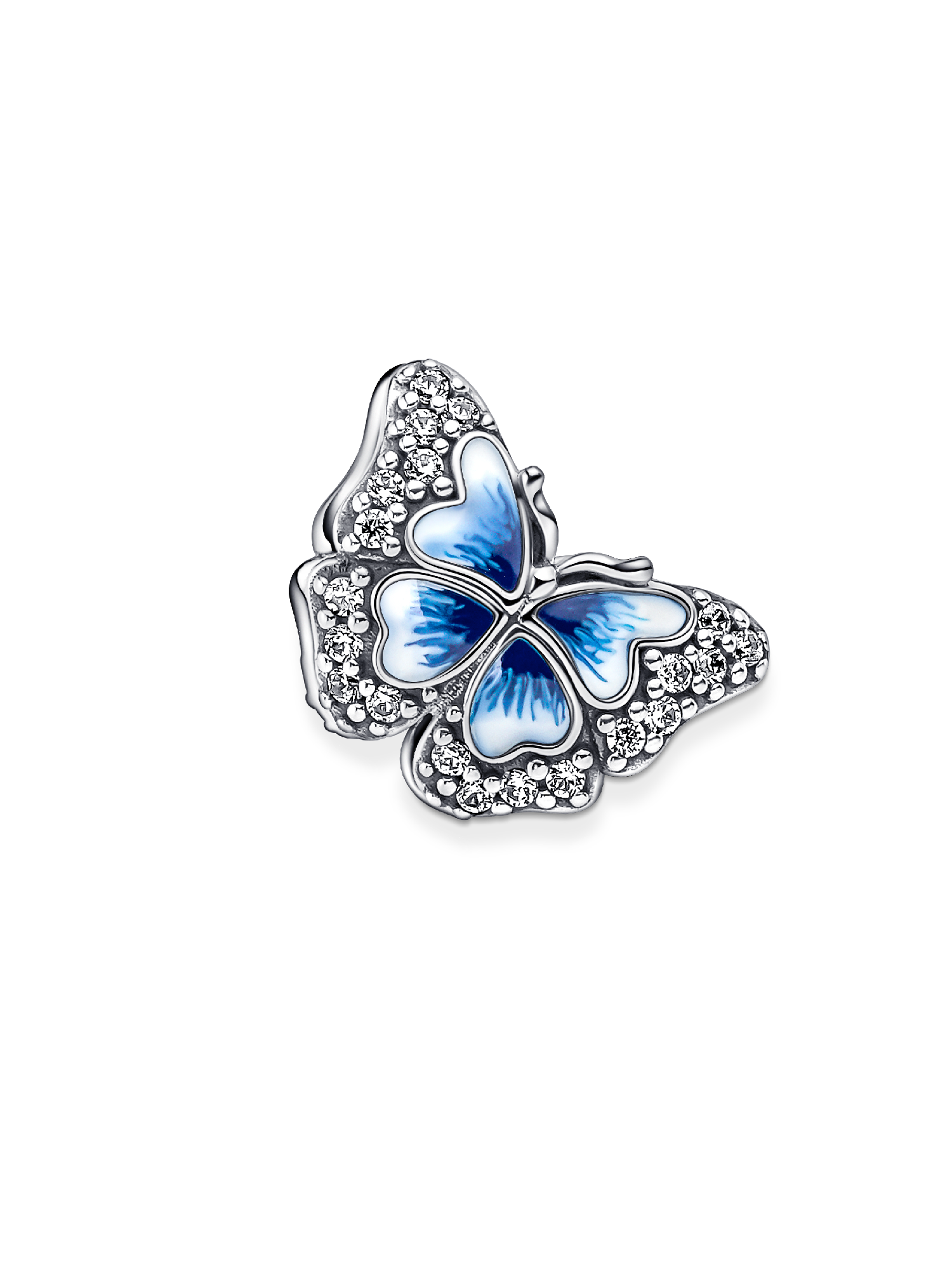 Embrace spring renewal and the season of transformation with our Blue Butterfly Sparkling Charm. Our double-sided sterling silver charm features hand-painted enamel and brilliant-cut clear cubic zirconia along the wings. Raised antennae add a life-like touch. Just like butterflies in nature, each charm is unique. Wear it with our matching Blue Butterfly Hoop Earrings for a coordinated statement this spring.