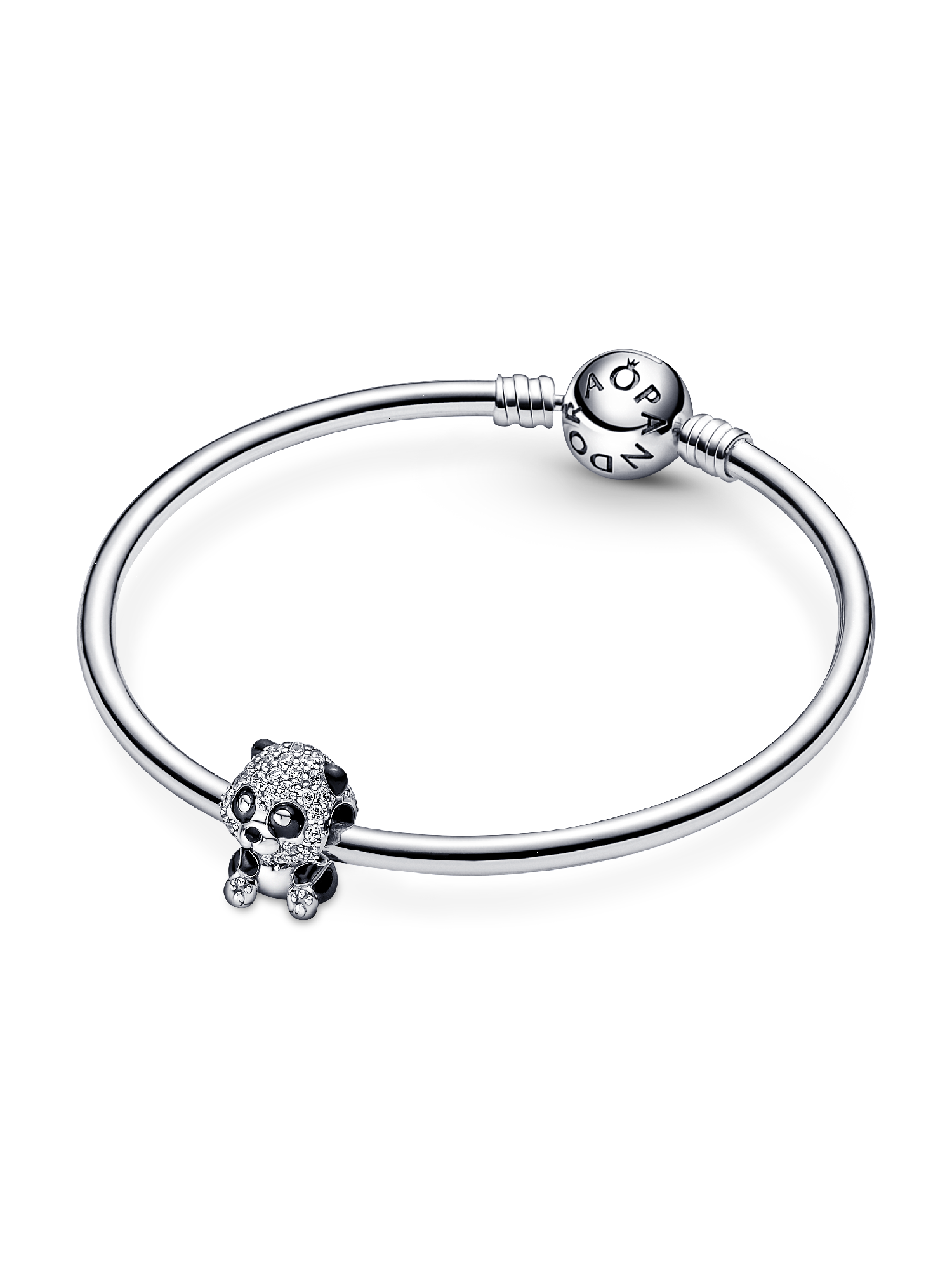 Reconnect with nature and welcome a new spring season with our Sparkling Cute Panda Charm. Inspired by the beloved Giant Panda, this symbol of power and wisdom sparkles in brilliant-cut clear cubic zirconia and shiny black enamel. The panda's oversized head and tilted expression add an extra dose of personality to our cuddly friend. Wear our panda with other animal charms as a reminder to stay wild at heart.