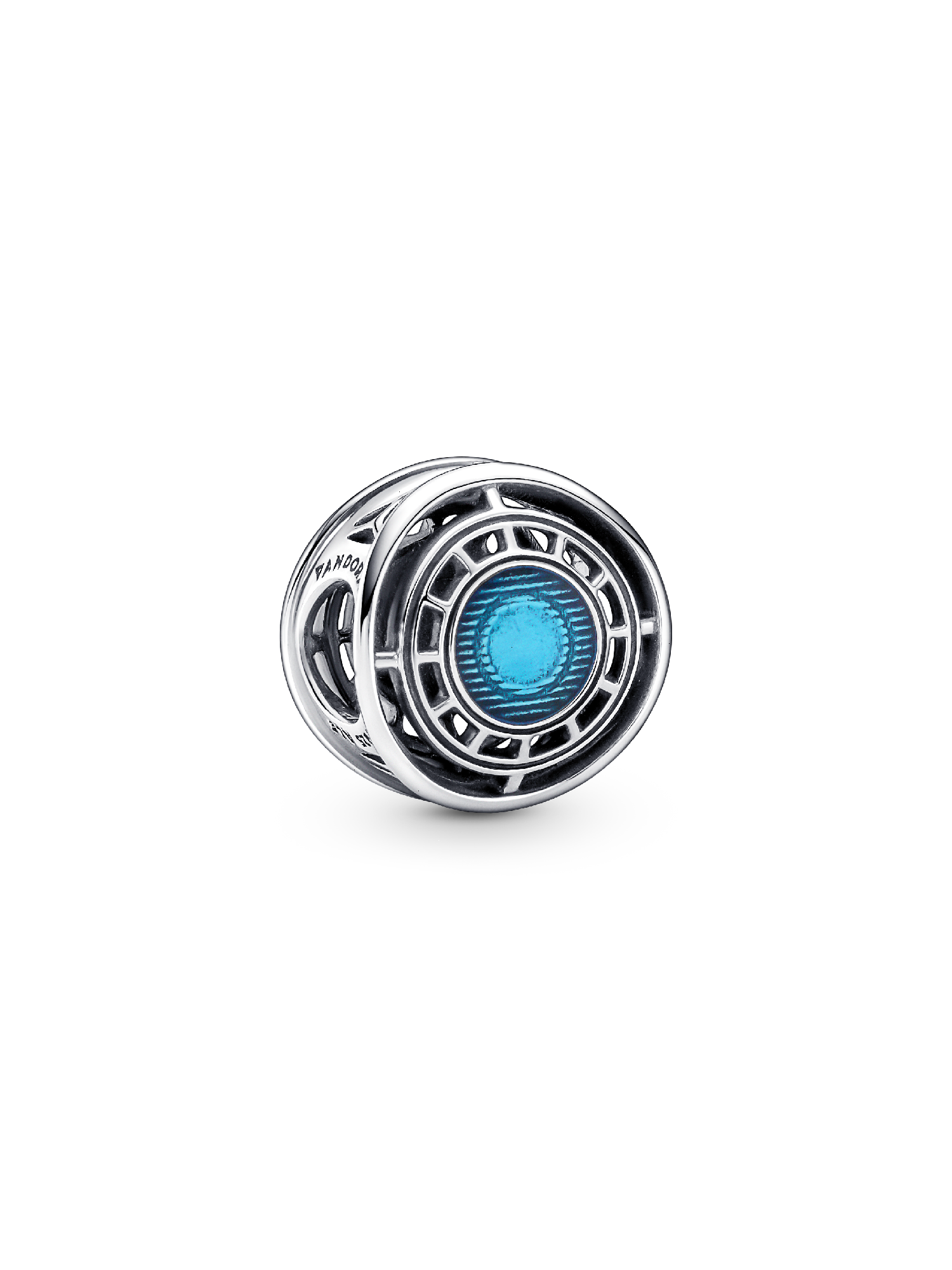 Carry the source of Iron Man's power with our Marvel The Avengers Iron Man Arc Reactor Charm. Representing Iron Man's artificial heart, our sterling silver charm features transparent blue enamel and textured details to recreate the look of mechanical machinery. Engraved on the back are the iconic words shared between Tony Stark as Iron Man and his daughter: "I love you 3000." Add this charm and more of your favorite heroes to our Pandora Moments Marvel The Avengers Logo Clasp Snake Chain Bracelet.
