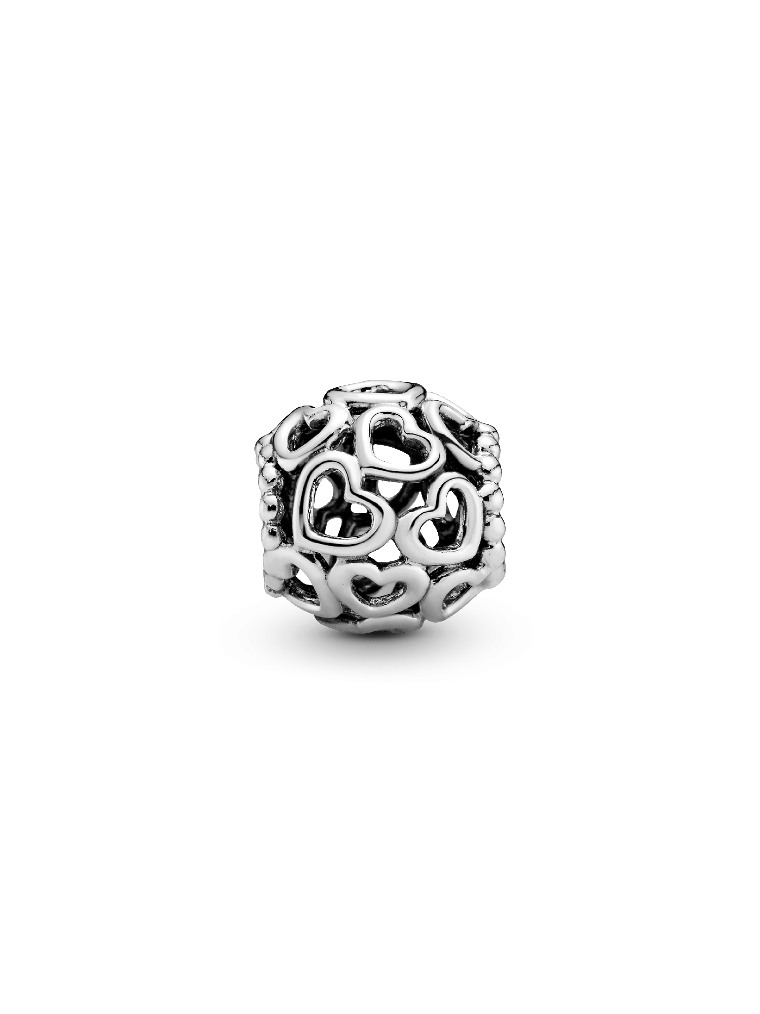 Hearts are an enduring symbol of love. Expertly hand-finished, this expressive sterling silver charm is shaped with openwork hearts that provide a glimpse of the carrier its worn on. Thread it on a favorite Pandora Moments bracelet or bangle together with other charms that tell your story. You can even wear it as a necklace pendant.