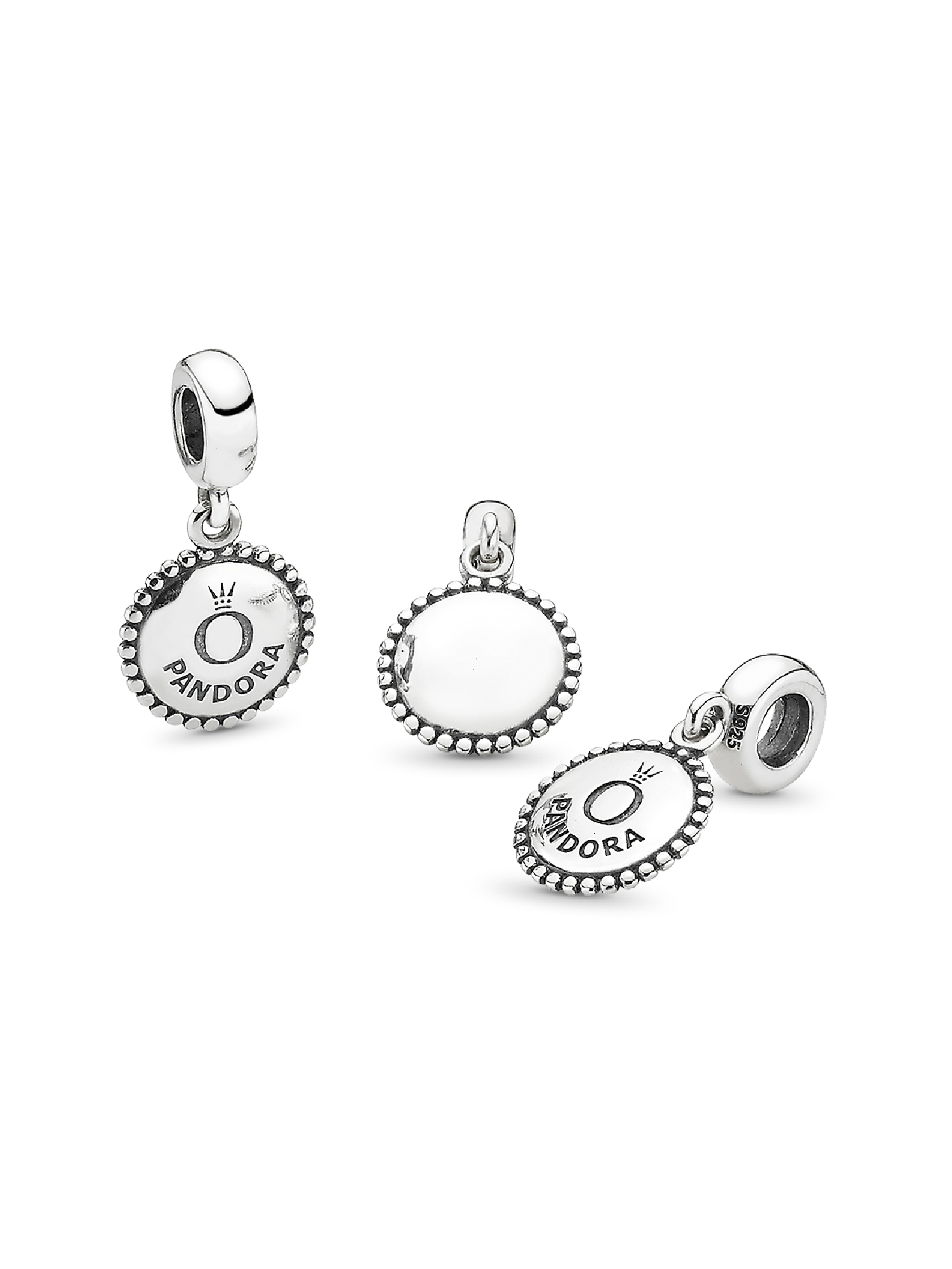 An elegant way to wear the logo trend, it's stamped with our brand name and crown O monogram making it the perfect piece for Pandora lovers. You can also try wearing it as a necklace pendant, displaying the front or back to suit your mood.