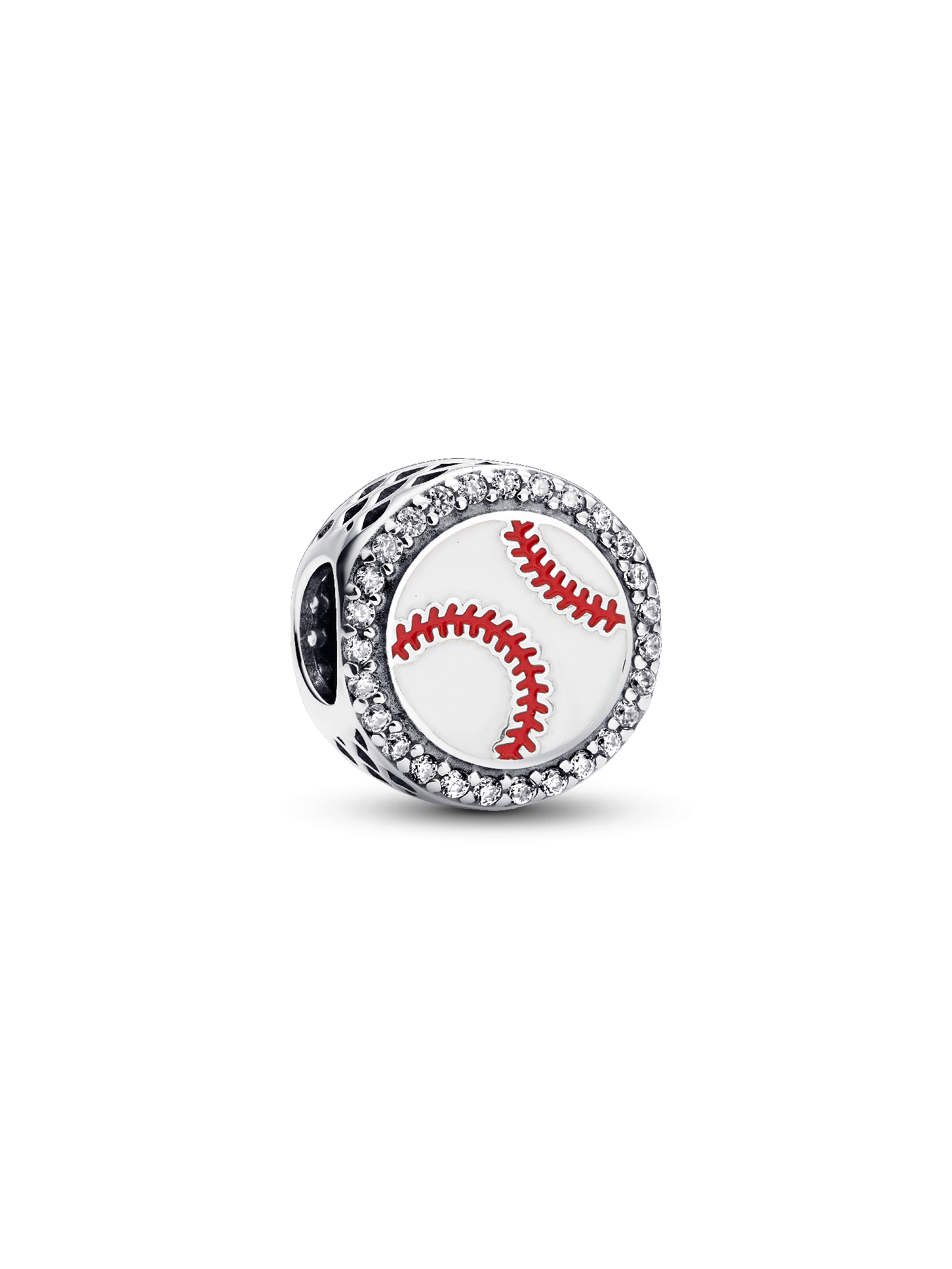 Strike out in style with our sterling silver baseball charm. Featuring white and red enamel to highlight intricate details, it offers a polished back to engrave a special message.