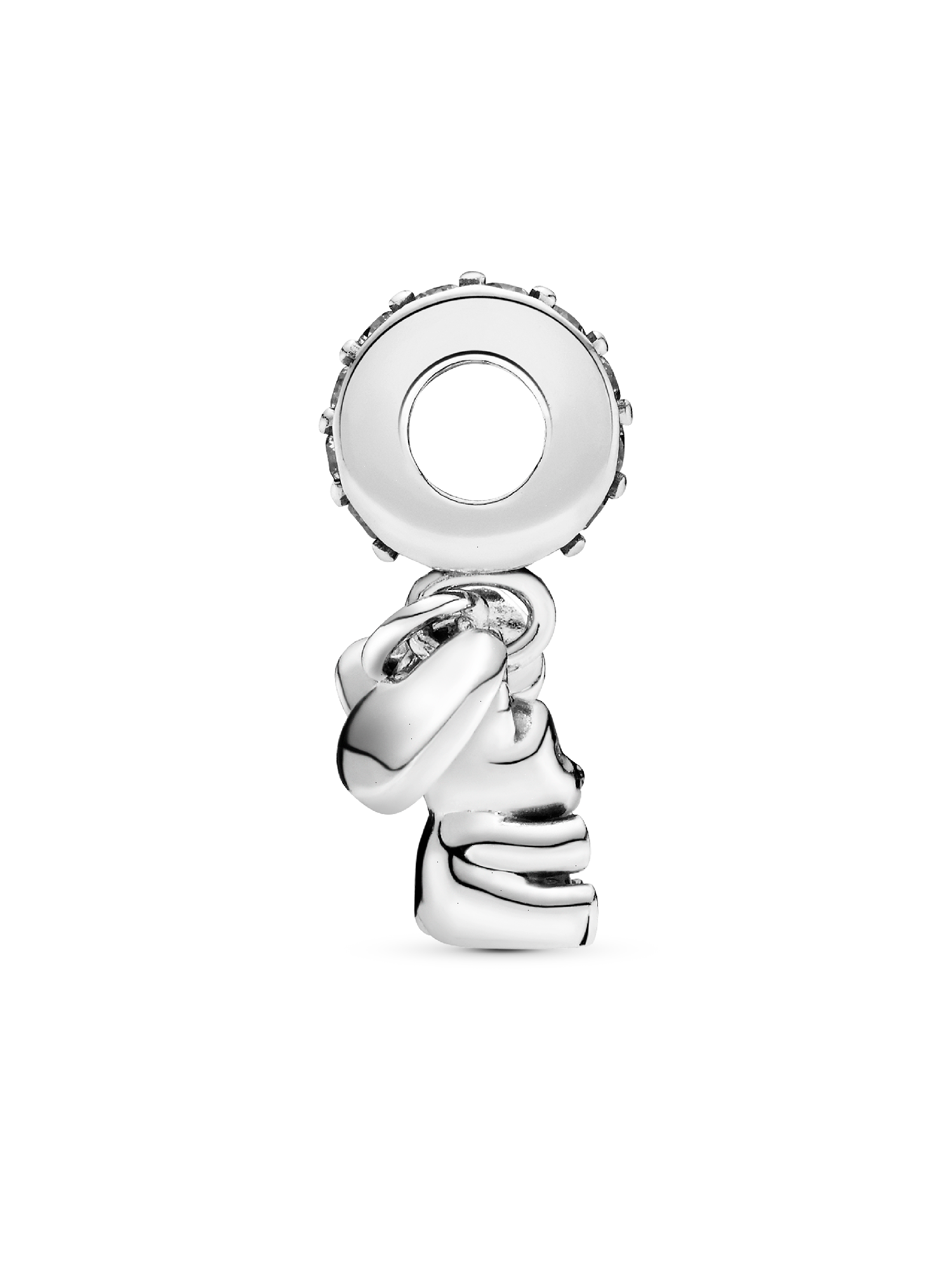 Whether you want to celebrate a new baby or show your love of the little things, our teddy bear charm adds a touch of whimsy to your bracelet style. This sterling silver dangle holds a trio of baby's essentials: a plush teddy, a soothing dummy and a loving heart. It's detailed with silver enamel and cubic zirconia stones. The charm makes for a perfect gift for a baby shower or a cute addition to your Pandora Moments bracelet as a personal reminder of a bundle of joy in your life.