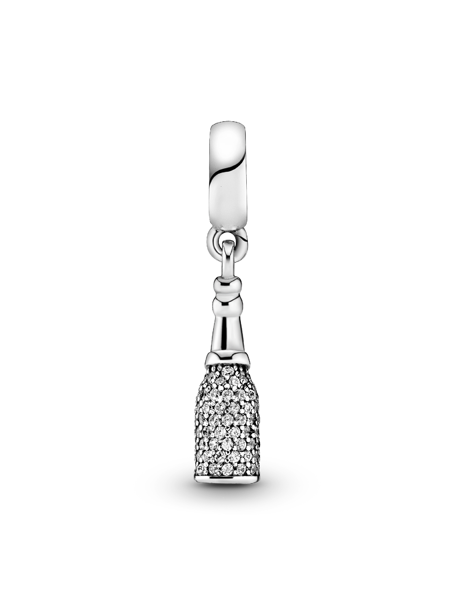 Crack open the bubbly and celebrate in style with our Champagne-inspired charm, cast in sterling silver and detailed with pavé-set cubic zirconia and a red enamel heart. The perfect symbol for any kind of celebration – yours or someone specials – it adds subtle sparkle and movement to Pandora Moments charm bracelets.