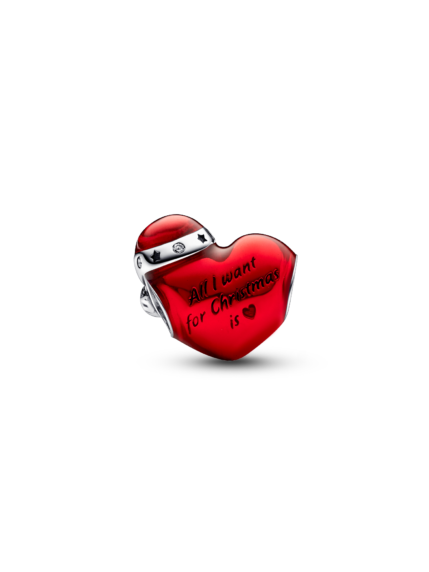 Capture the love in the air these holidays with this sterling silver Christmas heart charm, hand-finished in glossy red transparent enamel with a cute Santa hat detail and an engraving that reads "All I want for Christmas is" (followed by a heart symbol). Gift that warm fuzzy holiday feeling to a loved one (or yourself!) and celebrate the love and togetherness that make the season special.