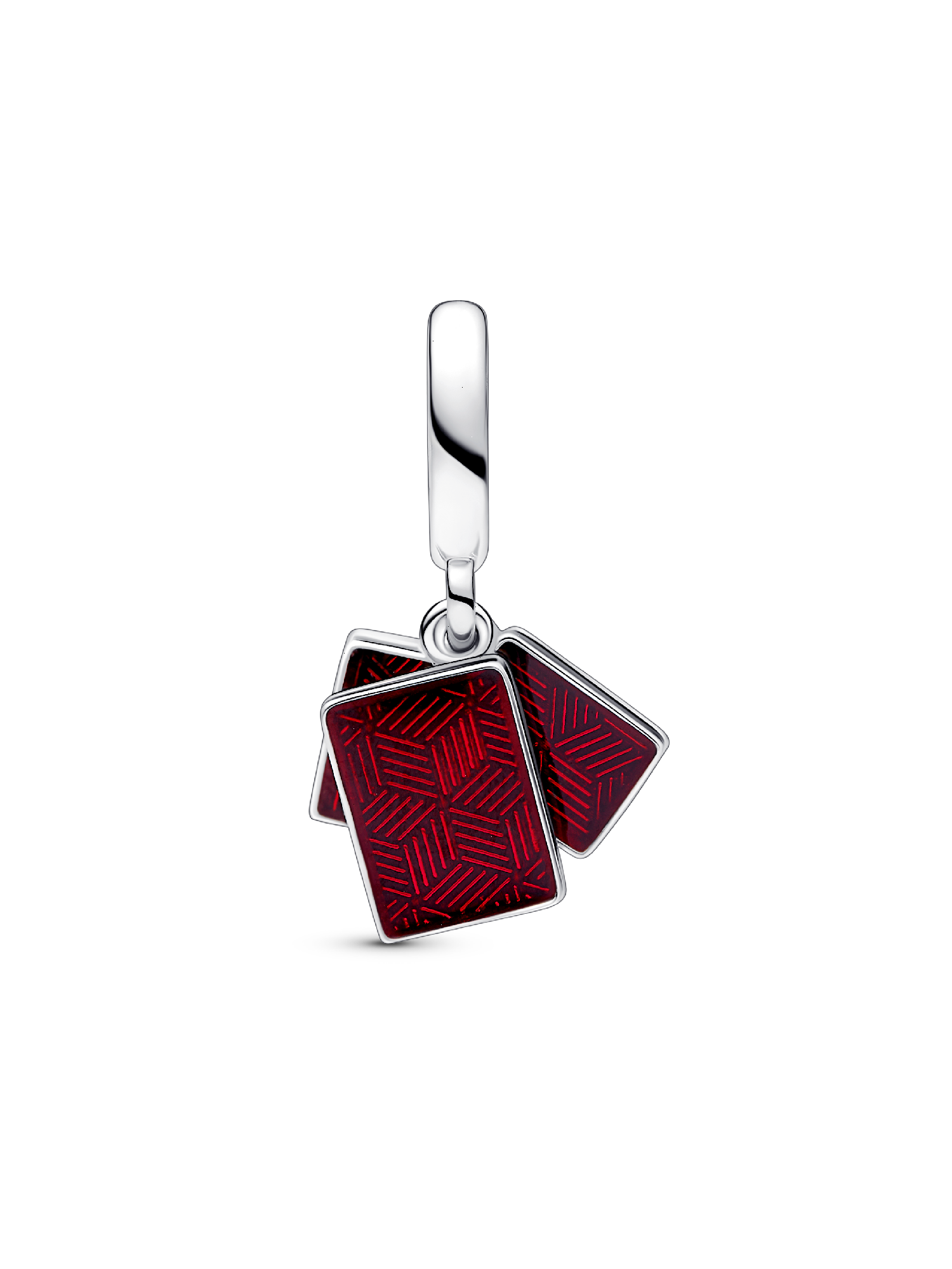 Carry the symbols of your favourite game with our Mahjong Triple Dangle Charm. In Chinese numerology, six is considered a lucky number and triple six represents a blessing for everything to go well. This sterling silver charm features three Mahjong tiles detailed with six red and green man-made crystals, six imprinted green enamel bamboo motifs and an engraved red enamel Chinese character for “six million.” Add it to your collection to always have a winning hand close by.